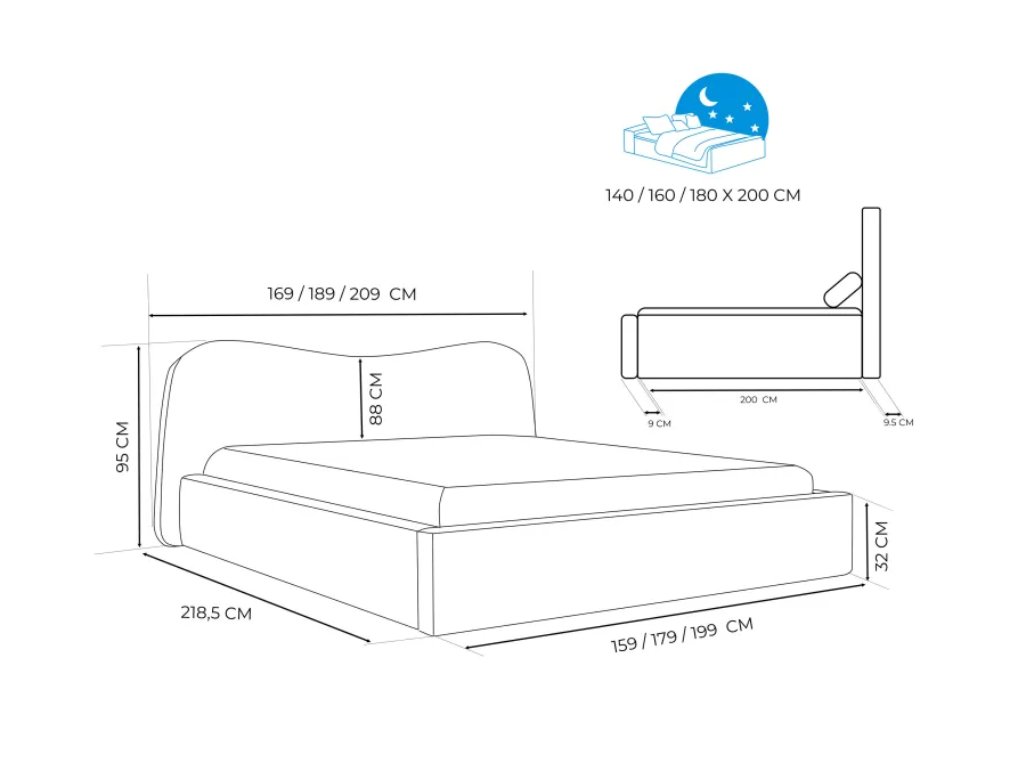 - plocha na spanie: 140/160/180x200 cm,