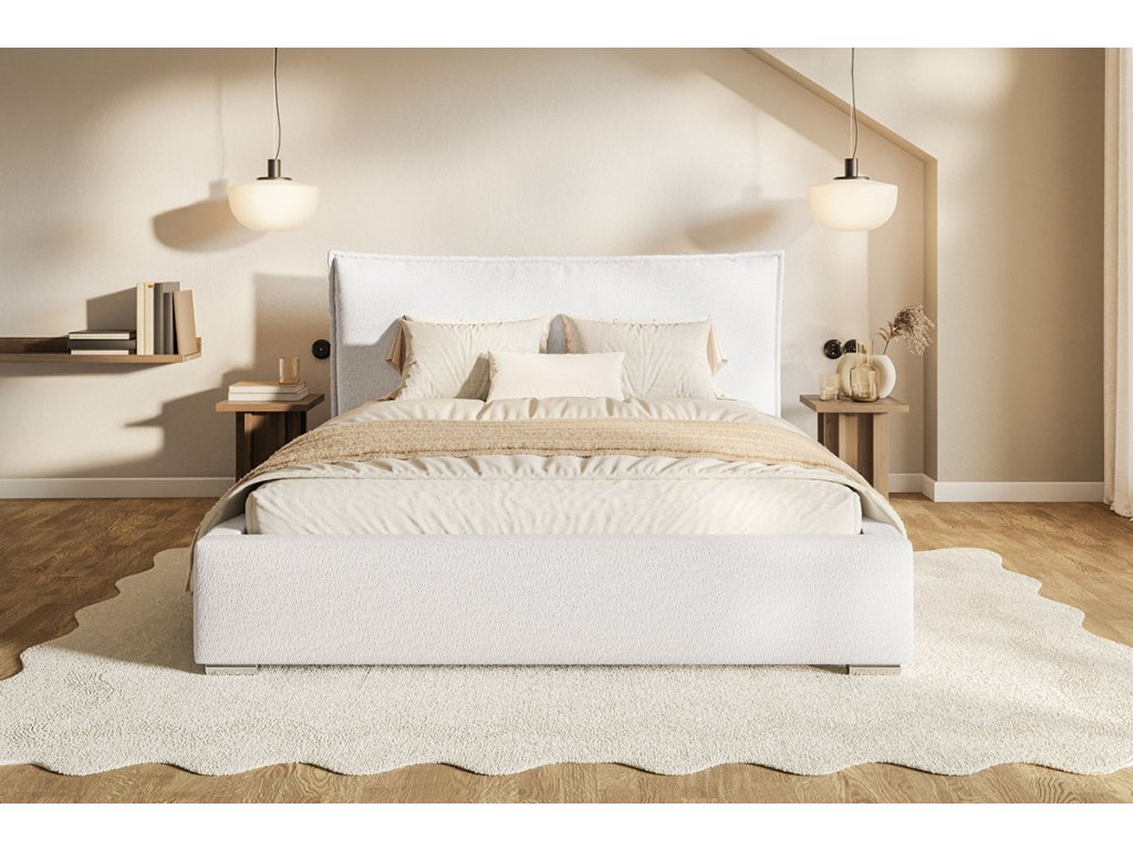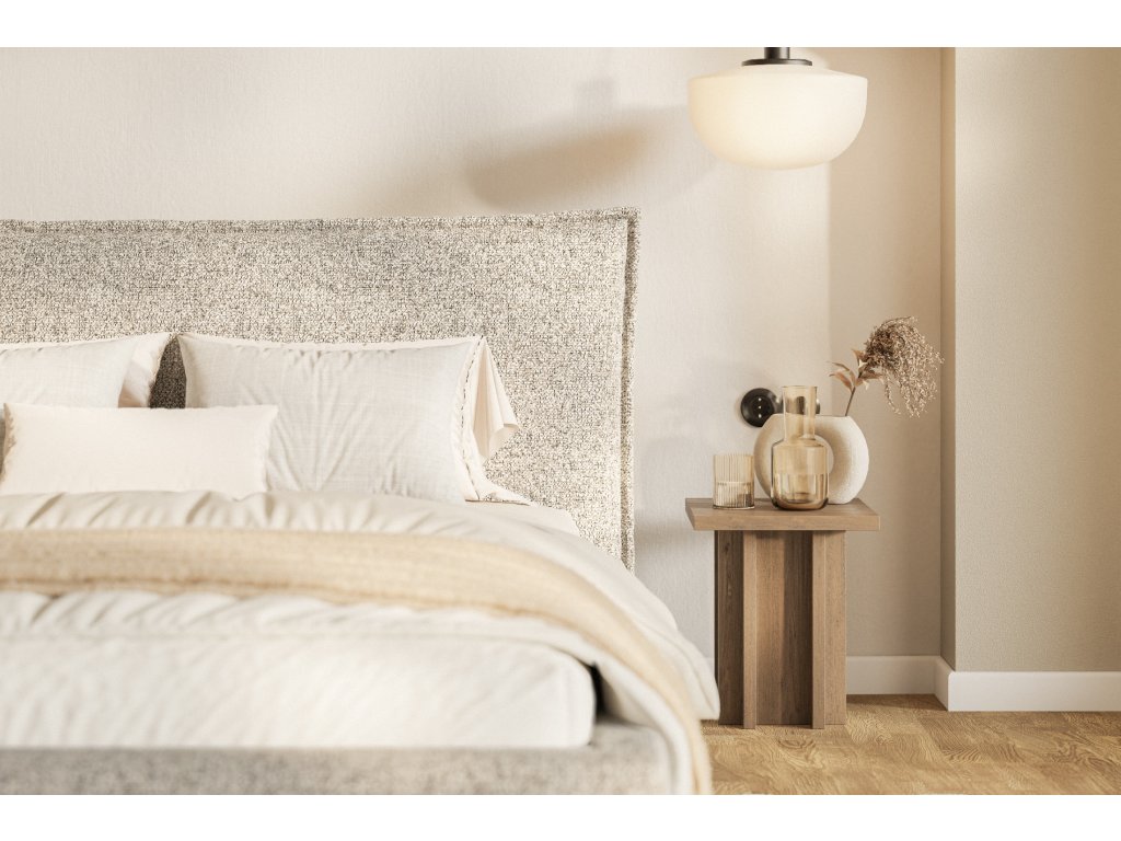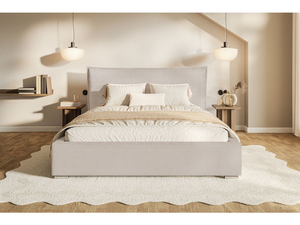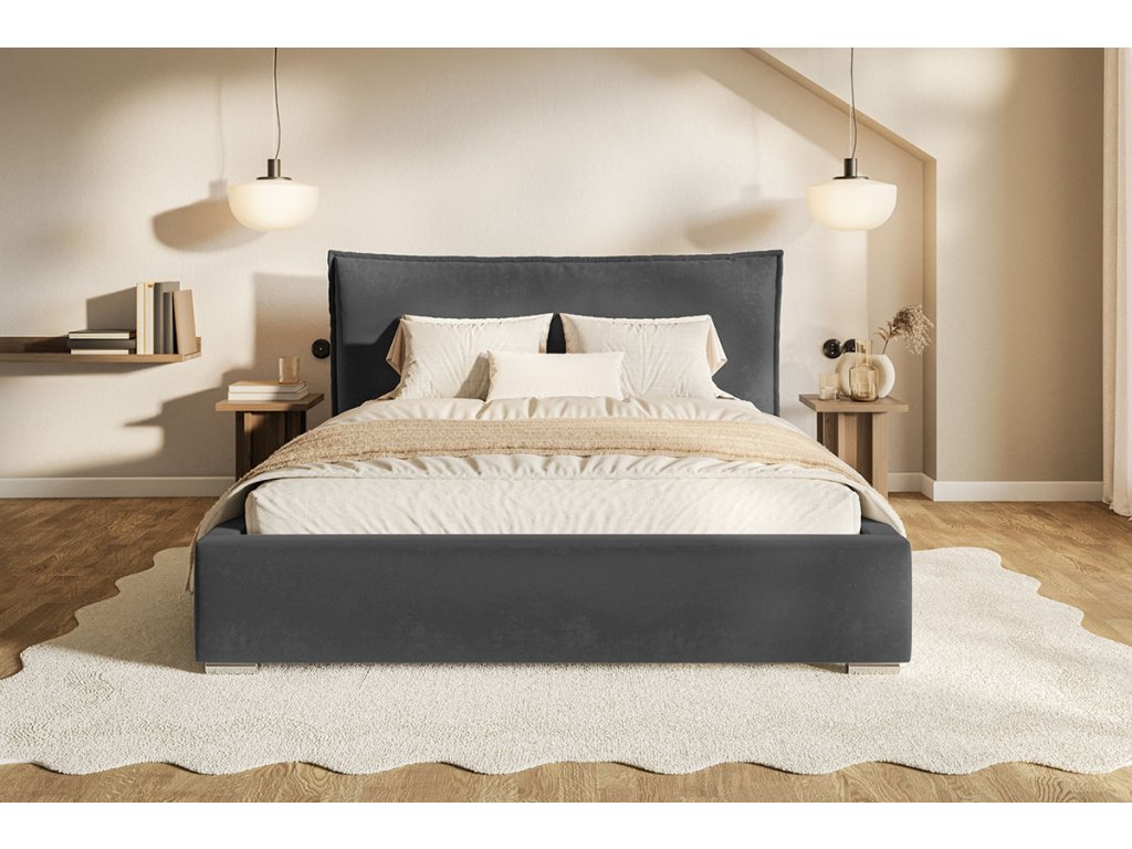 Hľadáte spojenie maximálneho pohodlia a nadčasového štýlu? Čalúnená posteľ HARLAN premení vašu spálňu na dizajnovú oázu pokoja. Dominantou postele je bohato polstrované čelo, ktoré presahuje šírku lôžka, čím vytvára luxusný vizuálny efekt a poskytuje dokonalú oporu pri večernom čítaní alebo sledovaní filmov.