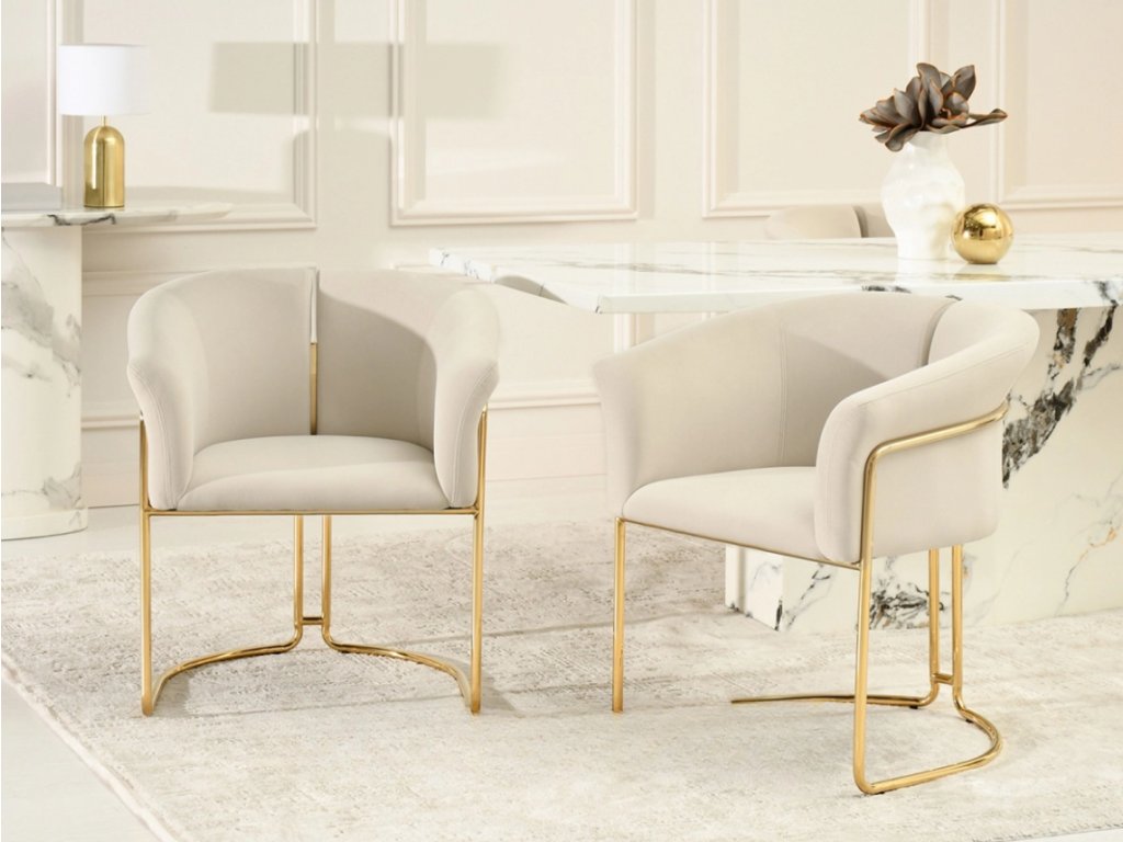 Čalúnená moderná stolička LOGAN béžová + zlatá podnož