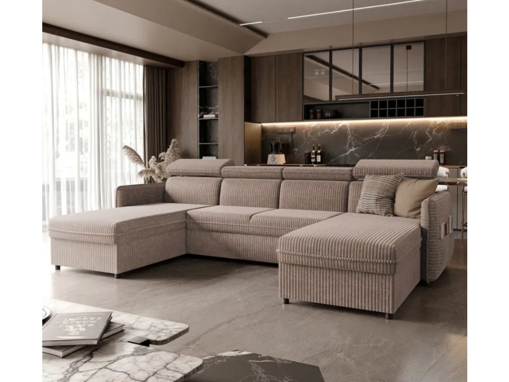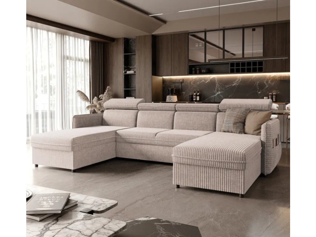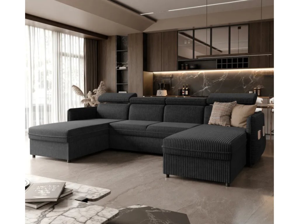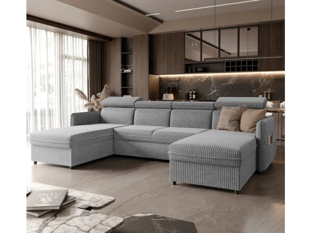 Ďalším prvkom, ktorý zvyšuje funkčnosť rohovej pohovky, je praktické vrecko umiestnené na boku pohovky , ktoré poskytuje ideálne miesto na uloženie drobných predmetov, ako sú diaľkové ovládače, noviny alebo knihy. Vďaka tomu máte všetko potrebné vždy na dosah ruky, čo zvyšuje pohodlie a estetiku nábytku.