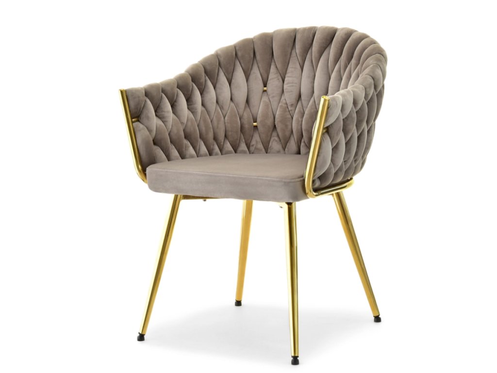 Táto jemne tkaná stolička EMILY je skutočným klenotom medzi nábytkom. Jeho krásne čalúnené operadlo v podobe copu ho odlišuje od ostatných stoličiek a dodáva mu jedinečný štýl. Navyše vďaka svojej odolnej konštrukcii a stabilnej základni v trblietavej zlatej je pevný, odolný a zároveň neuveriteľne efektívny!