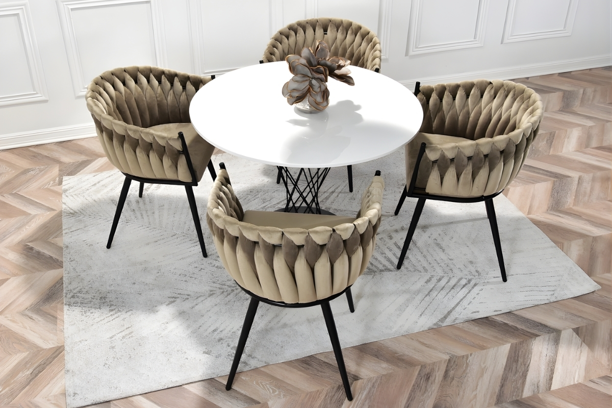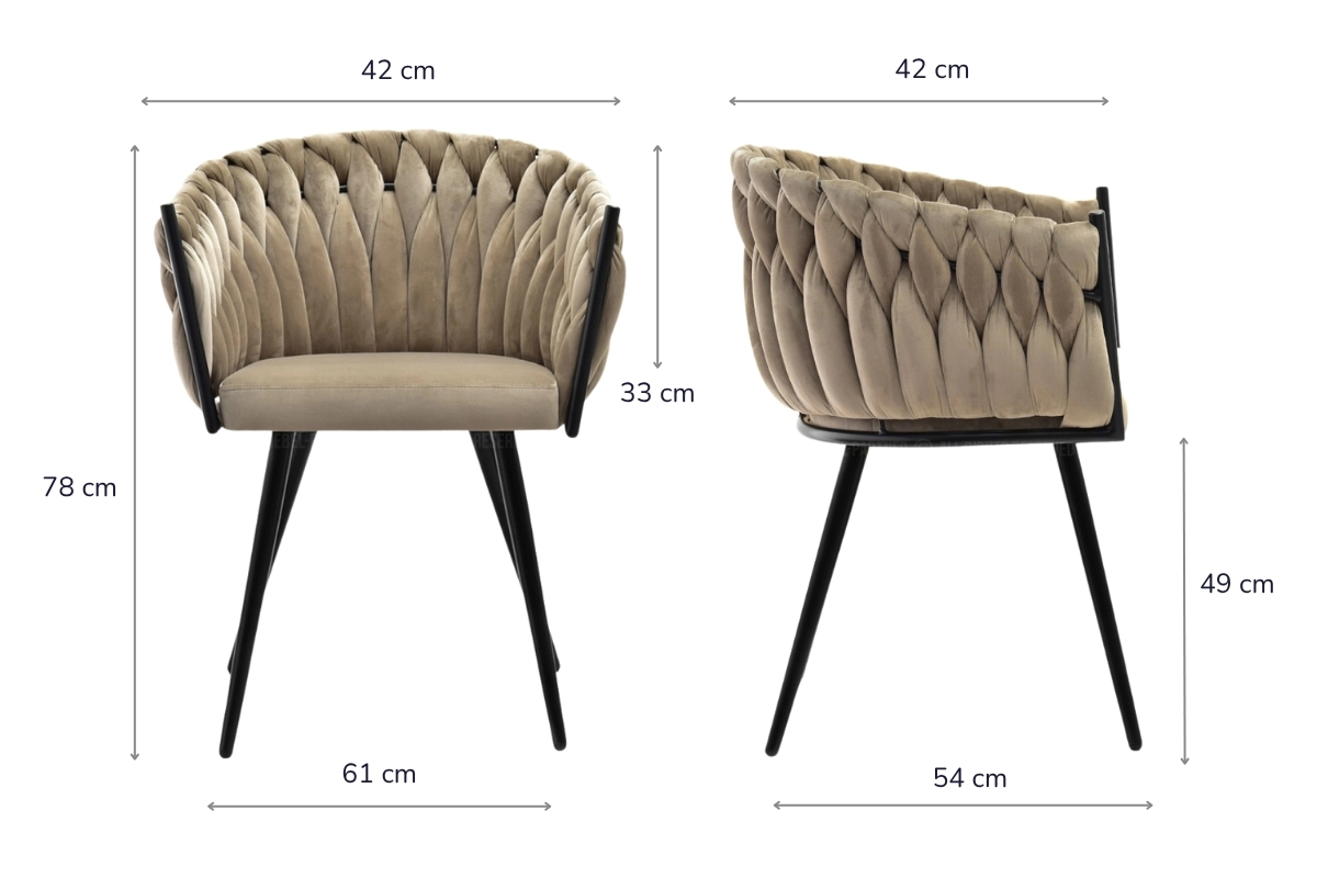 Táto jemne tkaná stolička EMILY je skutočným klenotom medzi nábytkom. Jeho krásne čalúnené operadlo v podobe copu ho odlišuje od ostatných stoličiek a dodáva mu jedinečný štýl. Navyše vďaka svojej odolnej konštrukcii a stabilnej základni v čiernej farbe je pevný, odolný a zároveň neuveriteľne efektívny!