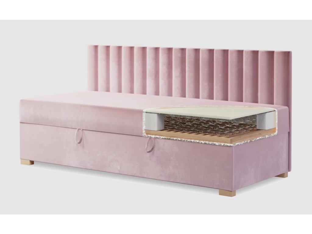 Čalúnená posteľ BYRON s úložným priestorom prekvapí aj svojím jedinečným interiérom. Je to nielen pohodlný a funkčný kus nábytku, ale aj ďalší úložný priestor. Veľký kontajner na posteľnú bielizeň vám umožní uložiť si spacie potreby a ďalšie drobnosti, vďaka čomu bude detská izba uprataná a organizovaná.