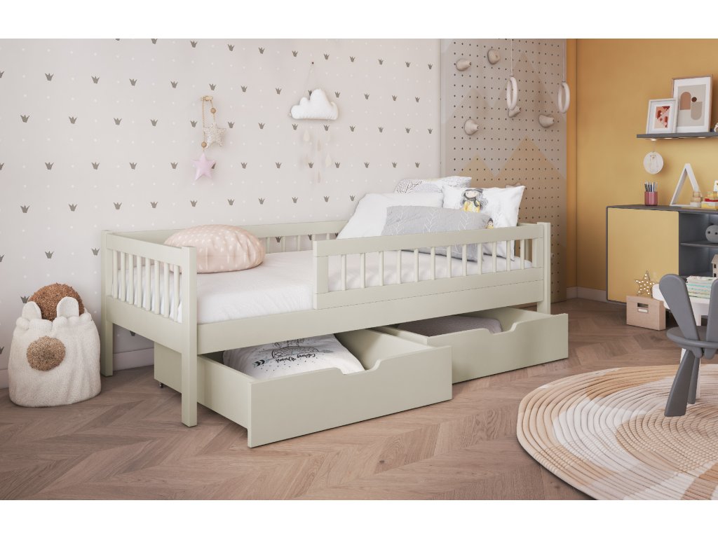 Postel FLORA je vhodná pre deti, ktoré už prerástli klasickú zábranu alebo detskú postýlku. Vďaka dostatočnému rozmeru na spanie, pevnému drevenému rámu a integrovanému úložnému priestoru je praktickou voľbou pre menšiu detskú izbu. Ľahká údržba a vysoká nosnosť zabezpečia, že postel vydrží roky každodenného používania.