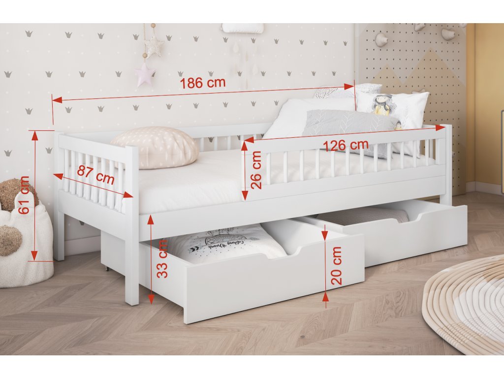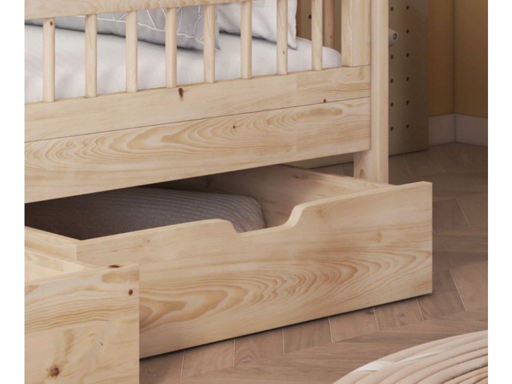 - Pod rámom sa nachádzajú zásuvky / úložný priestor - praktické riešenie pre posteľné prádlo či hračky.