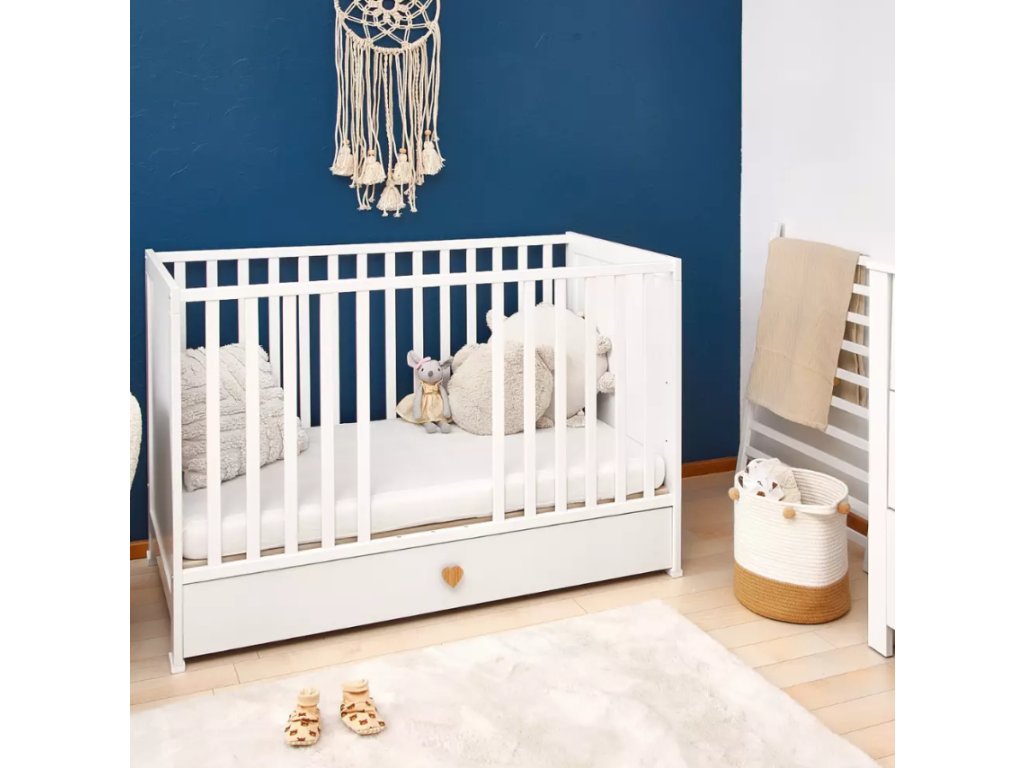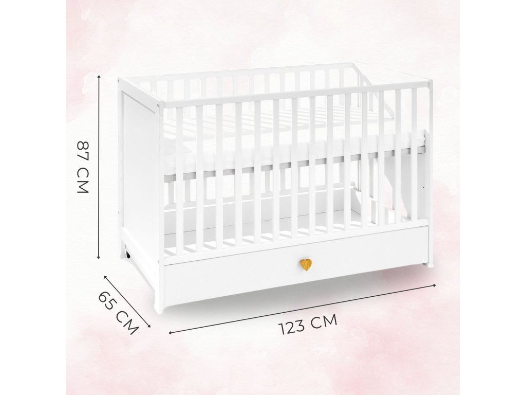 Naša detská postieľka MINIE s rozmermi 120×60 je vyrobená z najkvalitnejších materiálov, vďaka čomu je odolná a bezpečná pre vaše dieťa. Jej krásny dizajn a rukoväť v tvare srdca z nej robia perfektný doplnok do každej detskej izby a pôvabný doplnok do každého interiéru.