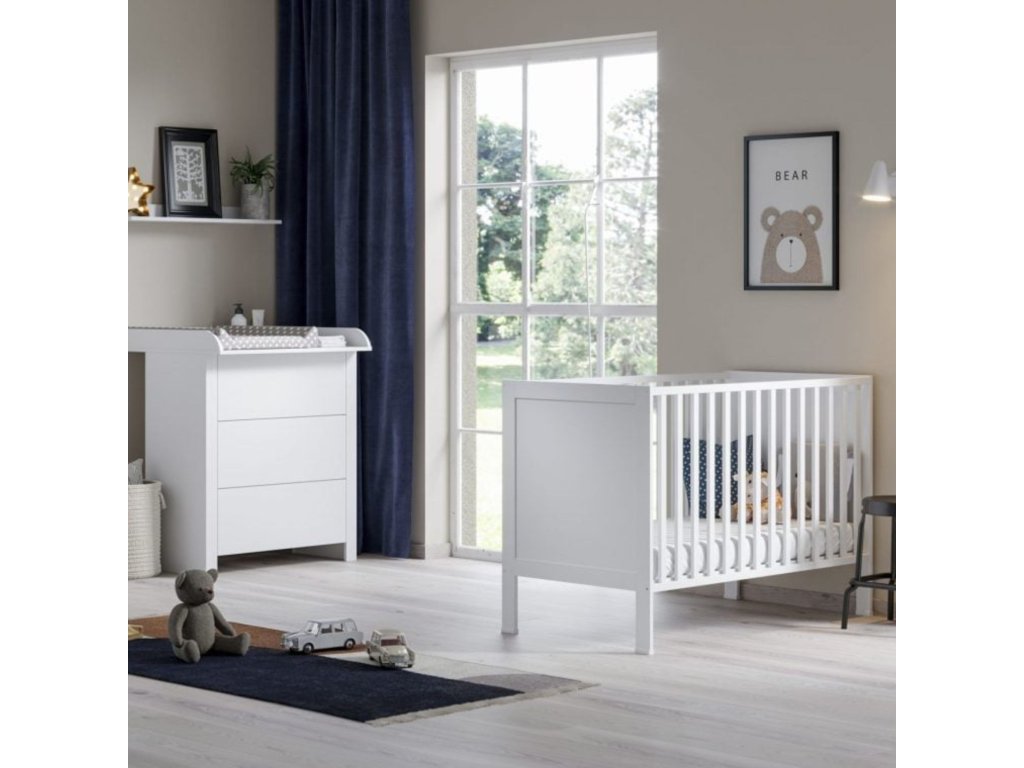 Táto pevná detská postieľka VERONICA s rozmermi 120x60 je určená pre bábätká od narodenia. Vďaka univerzálnemu dizajnu je vhodná do chlapčenskej aj dievčenskej izby. Neutrálny dizajn a jednoduchý geometrický vzor z nej robia perfektný doplnok do zvyšku detskej izby.