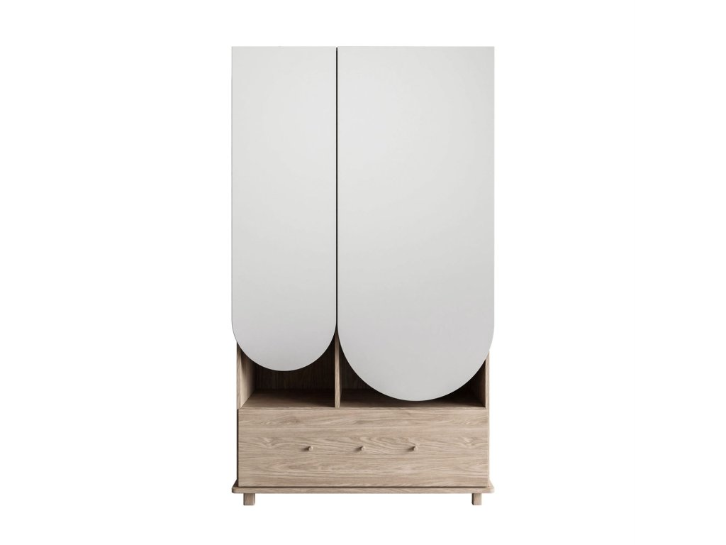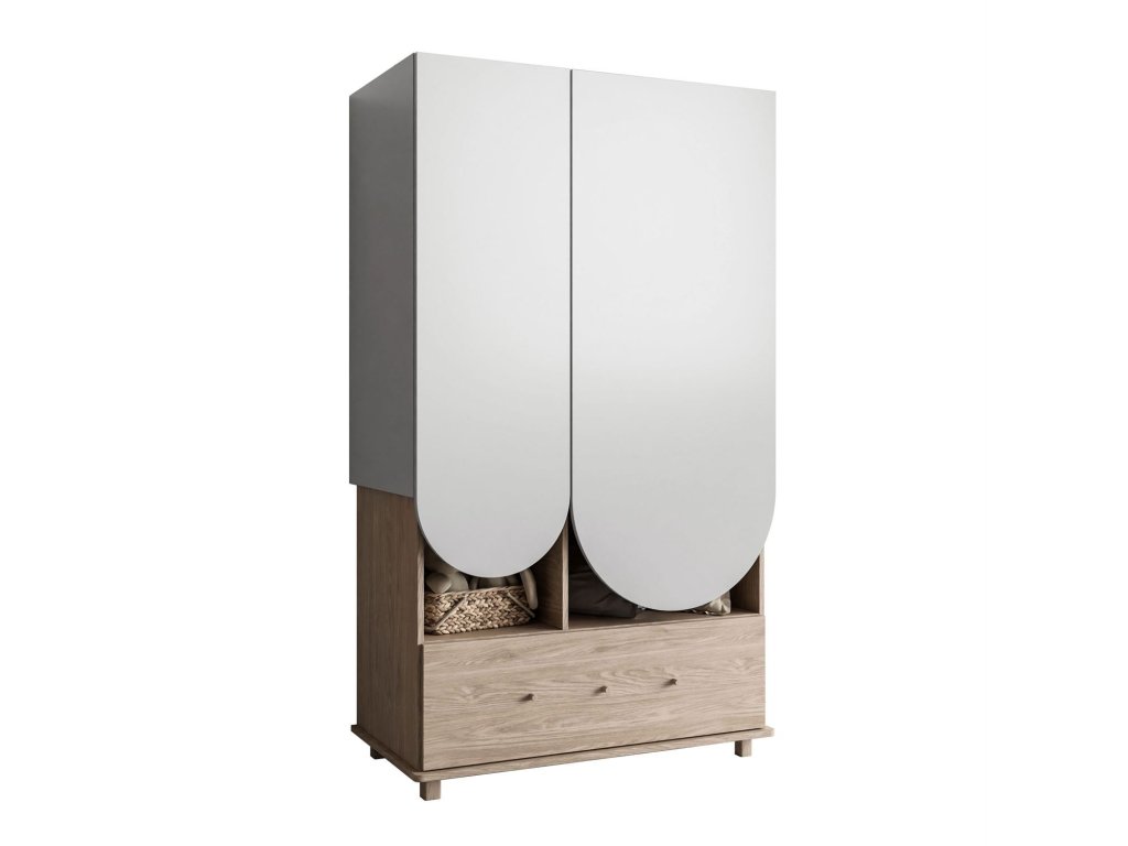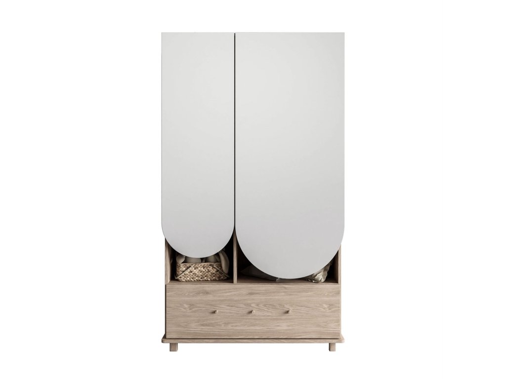 Táto skriňa bola navrhnutá s ohľadom na funkčnosť a štýl . Je vybavená vešiakovou tyčou a ponúka priestranný priestor na odloženie oblečenia na vešiakoch. Okrem toho má päť políc , z ktorých dve sú výškovo nastaviteľné , čo vám umožňuje prispôsobiť si interiér individuálnym potrebám. V spodnej časti sa nachádza priestranná zásuvka , ideálna na odkladanie väčších alebo malých predmetov.