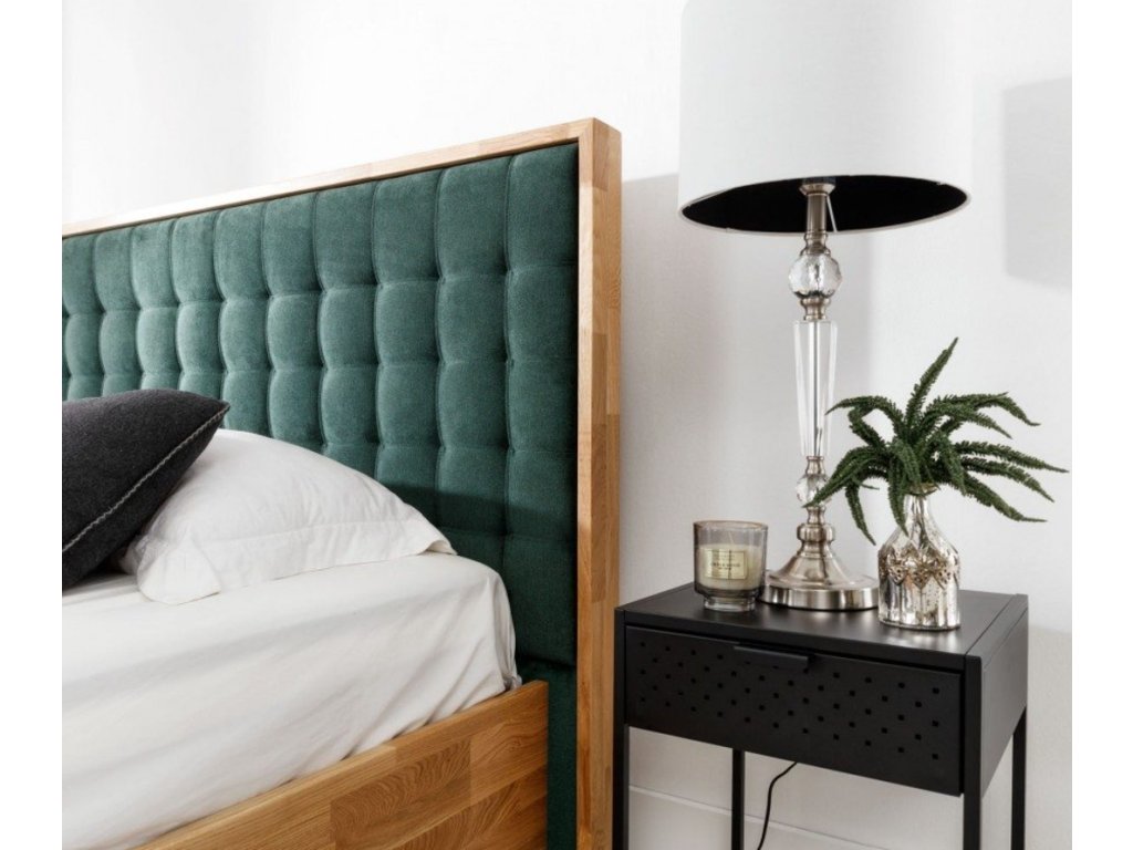 Spálňová posteľ s čalúneným čelom a dreveným rámom sa vyznačuje masívnosťou, moderným štýlom a predovšetkým mimoriadnou precíznosťou a kvalitou spracovania. Jedinečné čelo postele vyrobené v netradičných tvaroch dodáva interiéru moderný a teplý dekor.