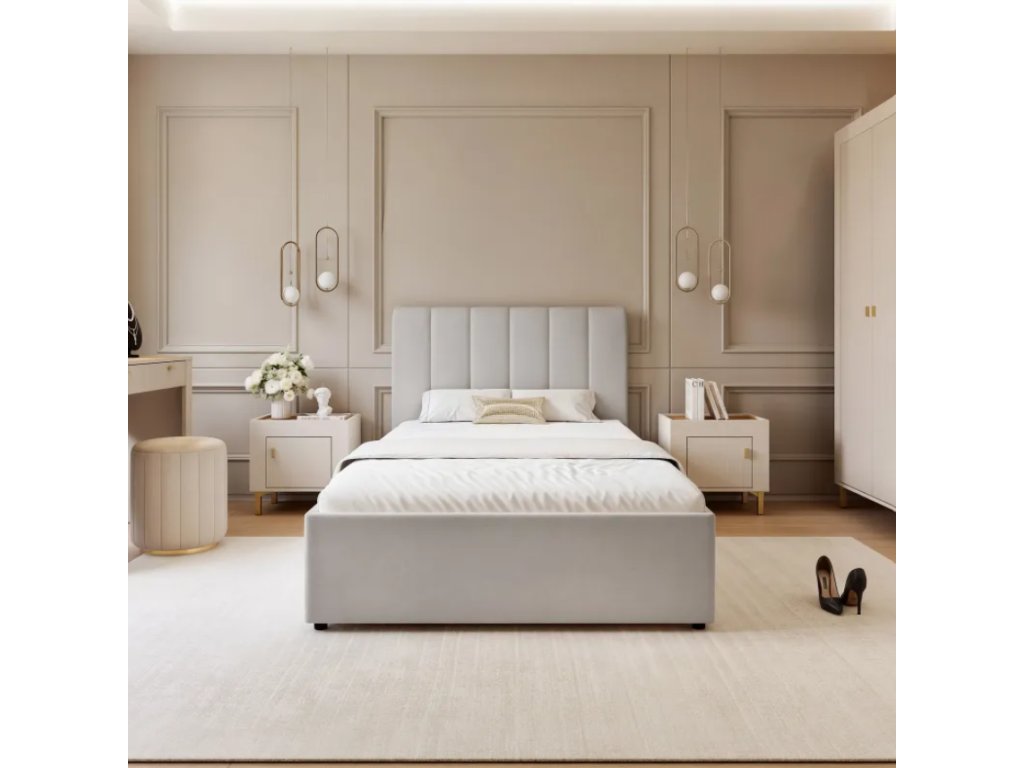 Čalúnená posteľ CLAIRA je elegantný a pohodlný kus nábytku, ktorý kombinuje moderný dizajn s funkčnosťou a poskytuje pohodlné miesto na odpočinok a relax v spálni.