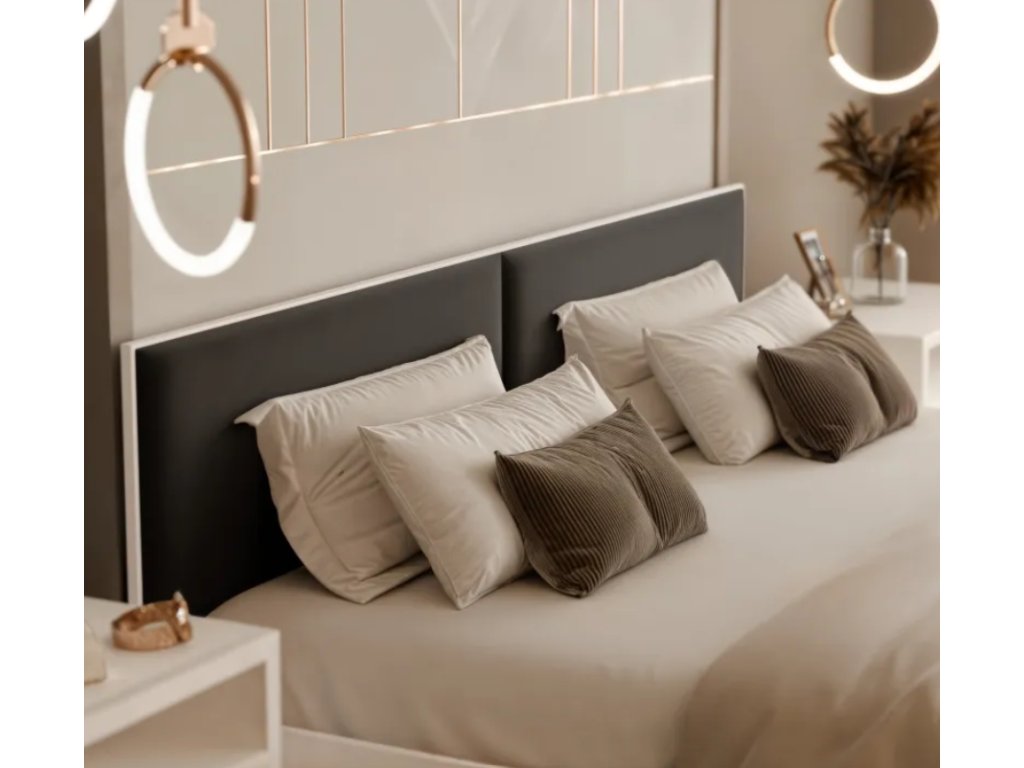 Mäkké, čalúnené panely na čele a prednej časti postele dodávajú nádych útulnosti a sofistikovanosti. Posteľ je dostupná v troch starostlivo vybraných farbách , takže si ju môžete jednoducho prispôsobiť svojej vízii interiérového dizajnu. Panely sú navyše pripevnené suchým zipsom , čo umožňuje rýchle odstránenie, čistenie alebo výmenu – bez nutnosti meniť konštrukciu postele.