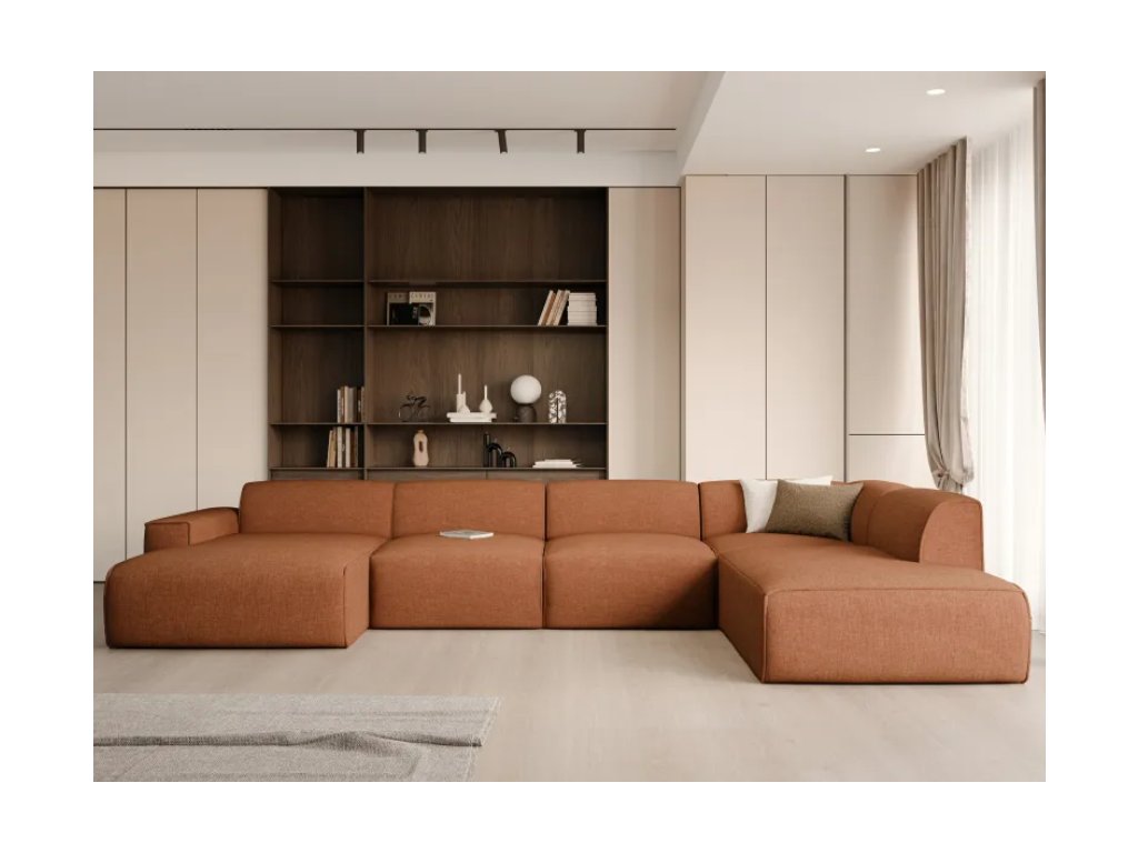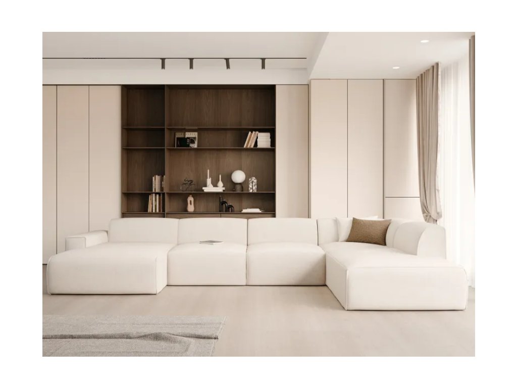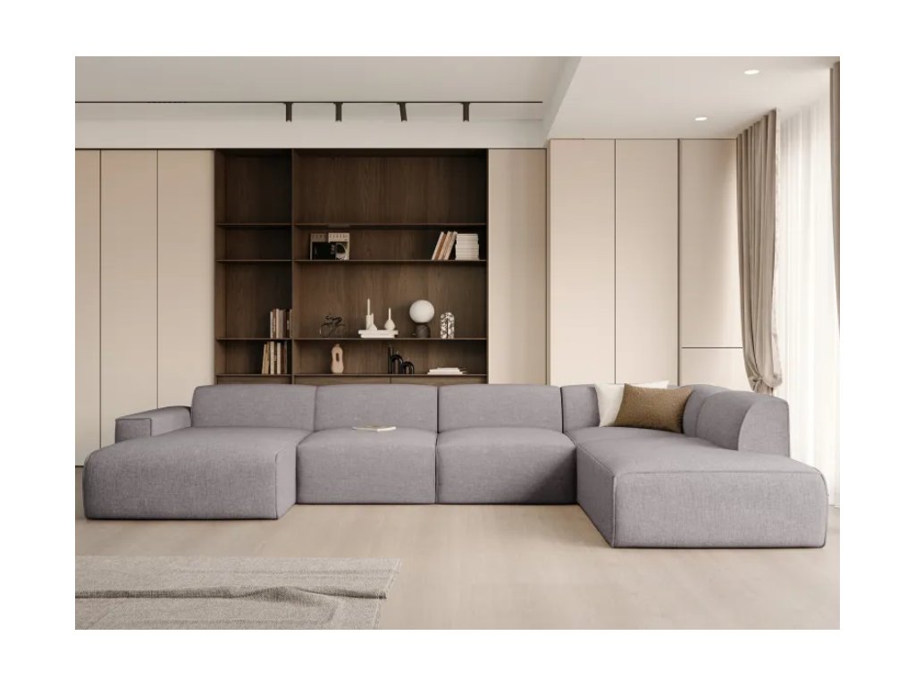 Rohová pohovka ZYAINE U je priestranná, čalúnená rohová pohovka v tvare U, ktorá kombinuje moderný dizajn s každodenným pohodlím.