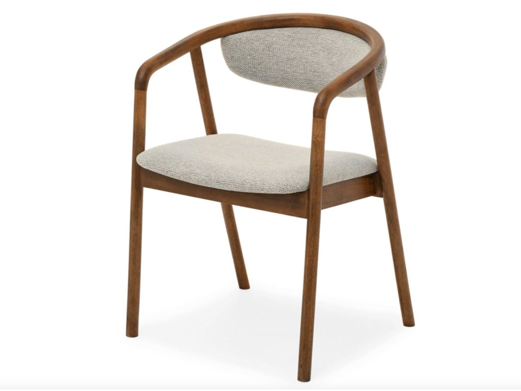 Dizajnová jedálenská stolička DARIA v kombinácii orechového dreva a béžového čalúnenia prináša eleganciu a pohodlie do každej jedálne. Pevná drevená konštrukcia zaručuje stabilitu a dlhú životnosť, zatiaľ čo mäkké sedadlo poskytuje komfort aj pri dlhšom sedení. Nadčasový dizajn sa ľahko kombinuje s moderným aj klasickým interiérom.