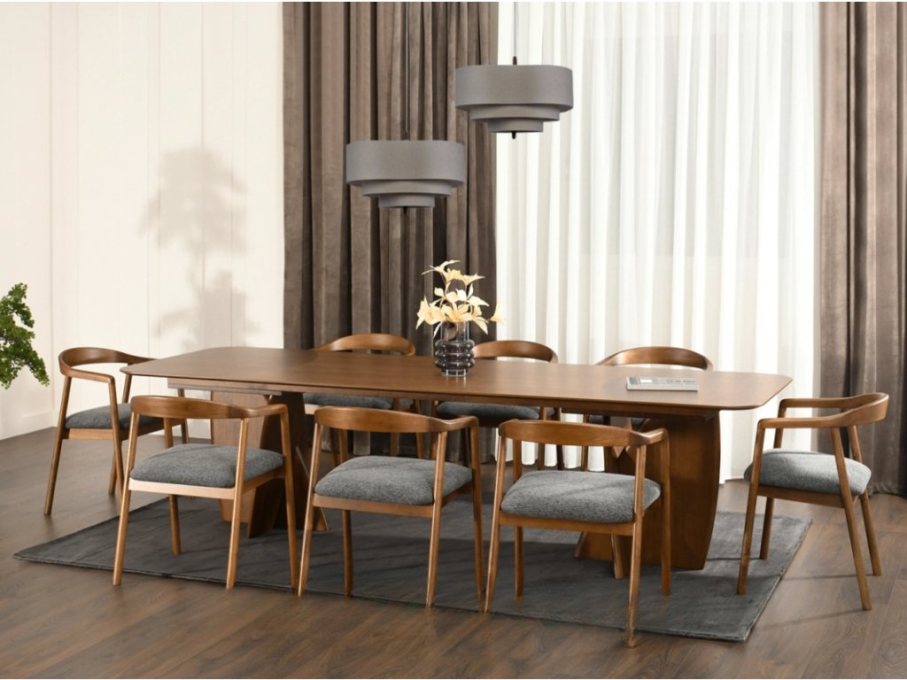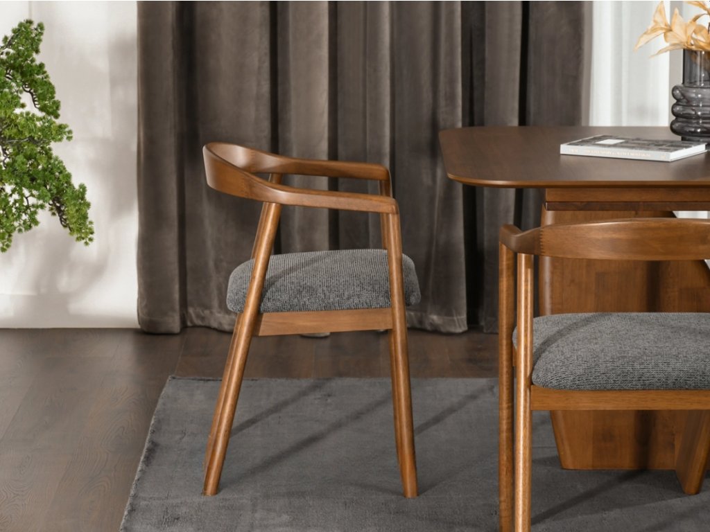 Model WESTON je stelesnením moderného, industriálneho štýlu a dokonale dopĺňa rôzne interiéry. Jeho orechová základňa krásne dopĺňa grafitové čalúnenie a vytvára harmonický a elegantný celok, ktorý evokuje prírodu. Je ideálny do priestrannej jedálne aj k pracovnému stolu v domácom štúdiu. Skombinujte ho so stolom Lindor alebo iným dreveným nábytkom a vytvorte útulný a štýlový priestor.