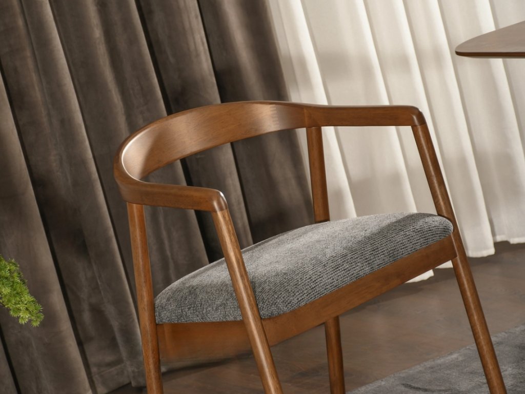 Model WESTON vyniká predovšetkým ergonomicky tvarovaným operadlom , ktoré poskytuje oporu chrbtu aj pri dlhom sedení. Čalúnené sedadlo v grafitovej farbe poskytuje mäkkosť a príjemný pocit, zatiaľ čo drevené podrúčky prispievajú k väčšiemu pohodliu. Ľahký, no zároveň stabilný rám zvýrazňuje prirodzenú textúru dreva a individuálny charakter každej stoličky. Táto stolička kombinuje estetiku s funkčnosťou, ideálna do rôznych domácich aj komerčných priestorov.