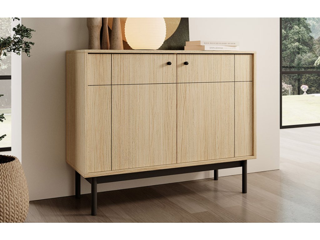 Komoda Brielle v dekore dub spája prírodný vzhľad s modernou funkčnosťou. Vďaka svojmu dizajnu sa hodí do viacerých typov interiérov – od vidieckeho cez škandinávsky až po moderný. Je ideálnym riešením do obývačky, spálne, jedálne alebo predsiene.