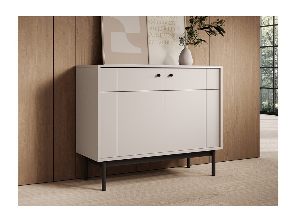 Komoda Brielle v jemnom odtieni kašmíru je elegantný a nadčasový nábytkový prvok, ktorý vniesie do vášho interiéru svetlú a upokojujúcu atmosféru. Kašmírový dekor vynikne najmä v moderných, škandinávsky ladených aj minimalistických prostrediach.