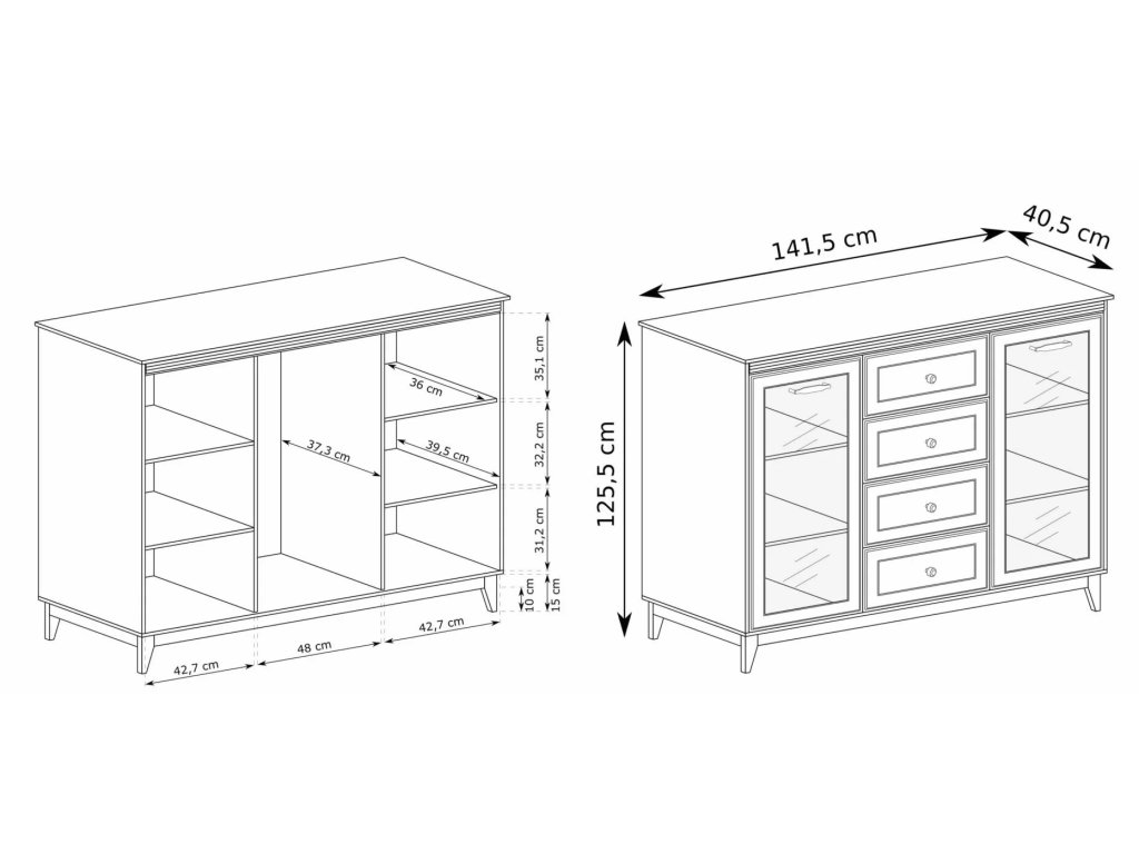 Komoda DANNA s vitrínou je elegantný kus nábytku, ktorý kombinuje moderný dizajn s praktickou funkčnosťou, a je ideálny na štýlové uskladnenie a vystavenie dekorácií