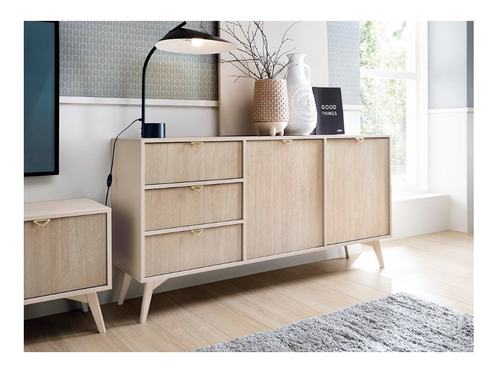 Komoda Davina je štýlový a praktický kus nábytku, ktorý ideálne doplní vaše bývanie. Kombinuje moderný dizajn s dostatočným úložným priestorom. Hodí sa do obývacej izby, jedálne, spálne alebo predsiene.