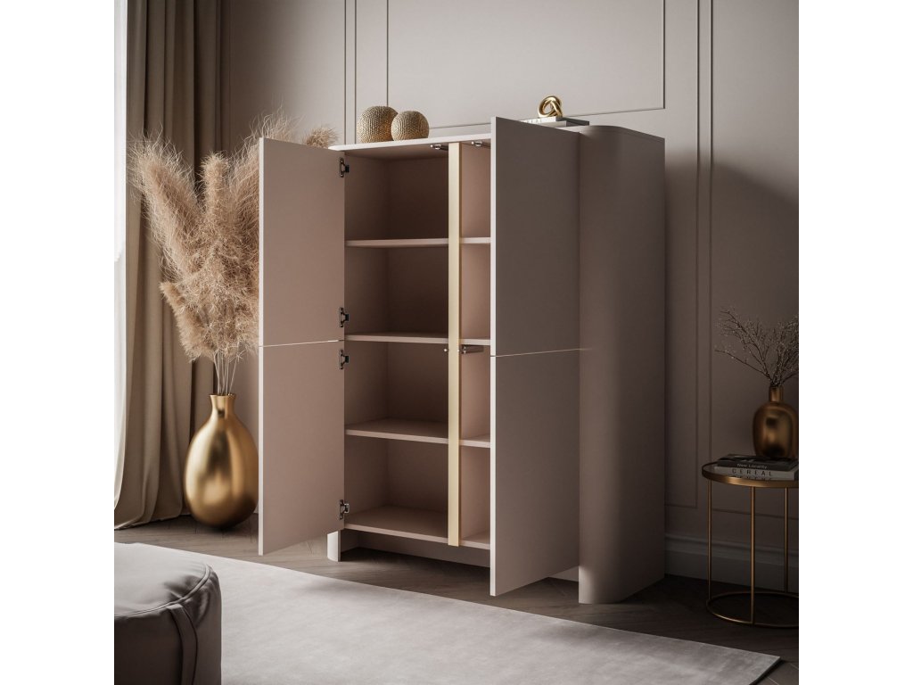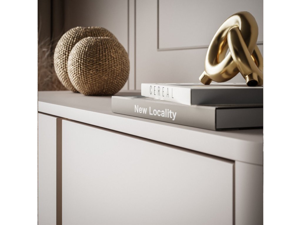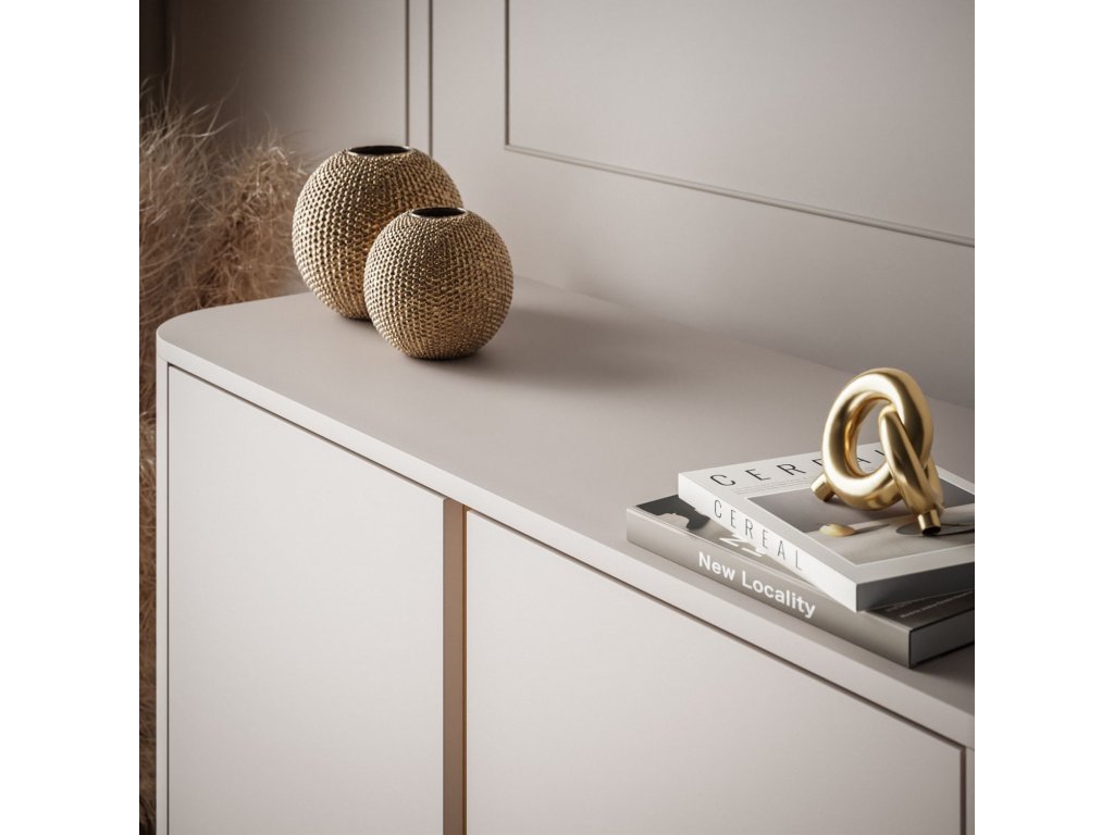 Komoda HARLEM kombinuje modernú eleganciu s funkčnosťou a ponúka matný povrch, zaoblené hrany a praktické police skryté za štyrmi prednými stranami. Je to štýlový a praktický kus nábytku, ktorý do každého interiéru vnesie harmóniu, ľahkosť a decentný luxus.
