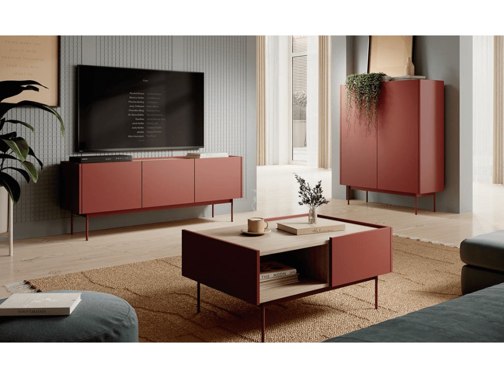 Dizajnová komoda HOLDEN keramická červená + dub linea