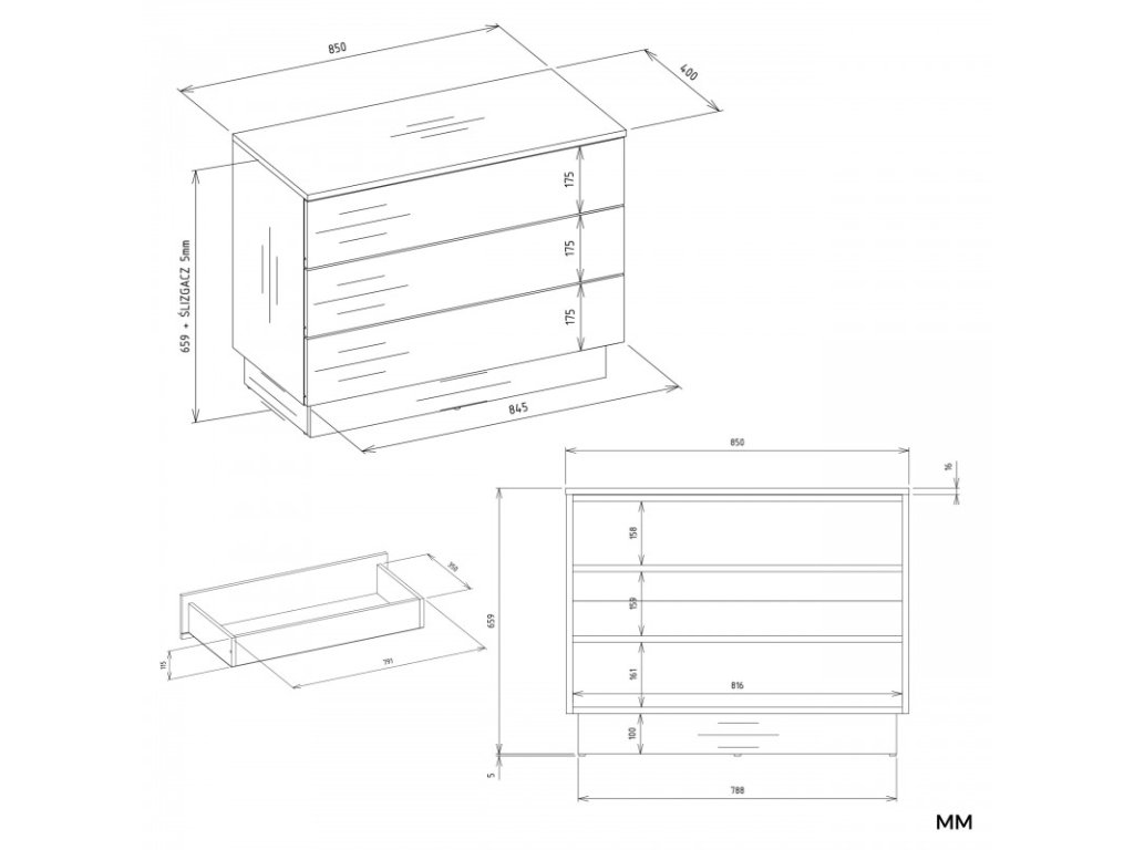 Táto moderná komoda VASIL je štýlovým a funkčným riešením pre každý interiér. Vďaka kompaktným rozmerom je ideálna do spálne, obývačky, chodby alebo detskej izby. Disponuje tromi priestrannými zásuvkami pre jednoduché uloženie oblečenia, dokumentov a drobných doplnkov.