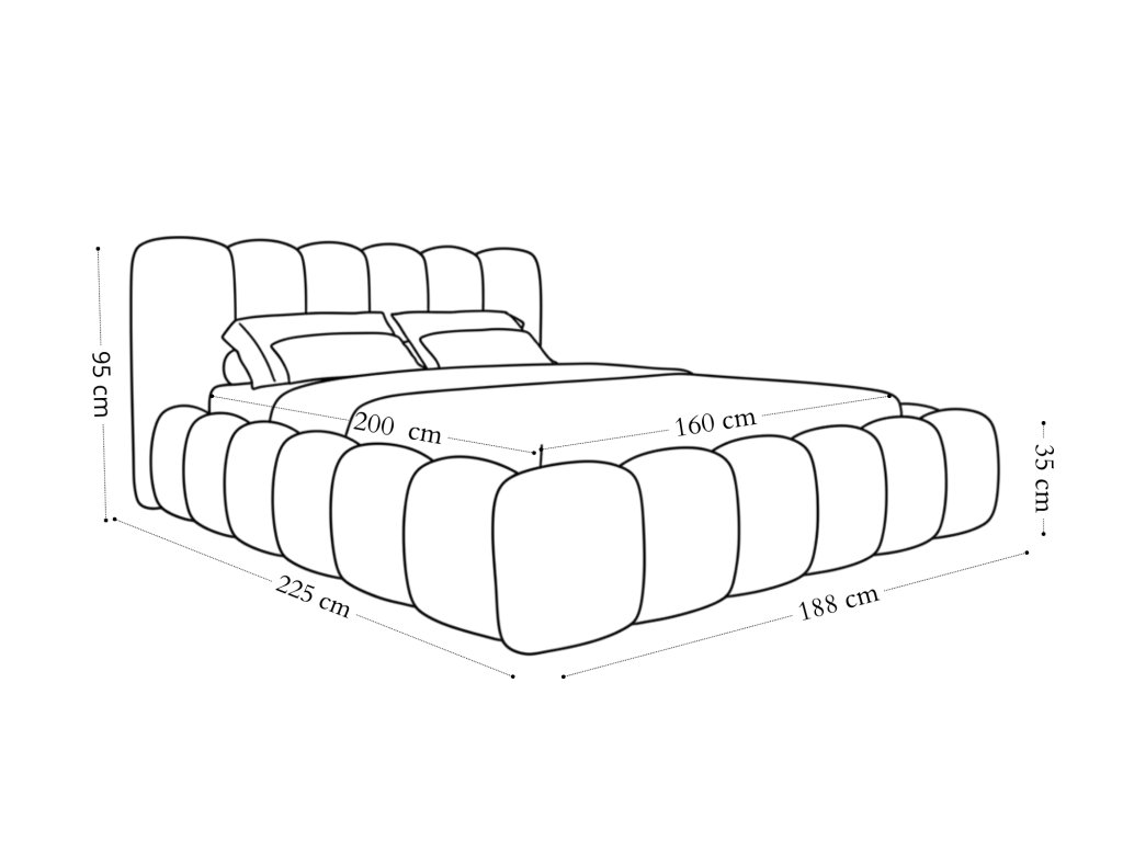 Tip: Pri plánovaní umiestnenia nezabudnite, že k dĺžke matraca (200 cm) treba pripočítať 25 cm kvôli hrúbke čela a predného panelu.