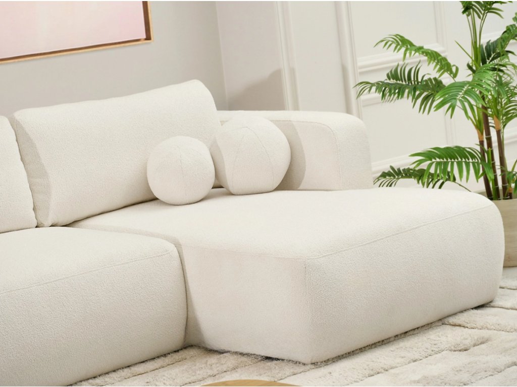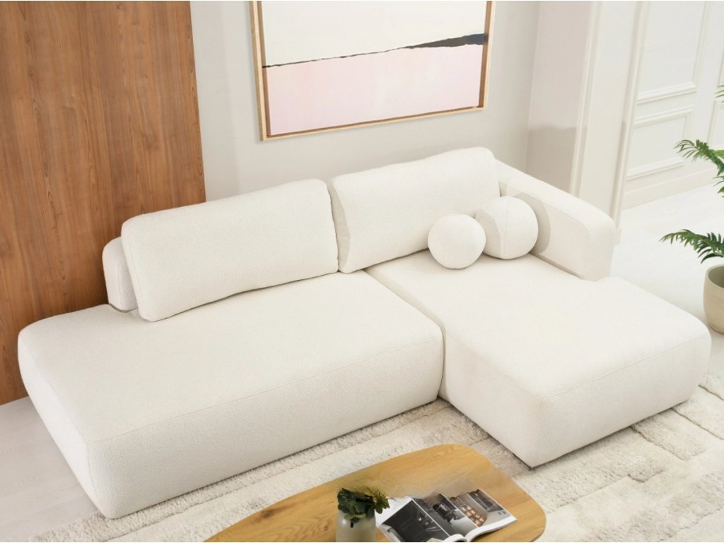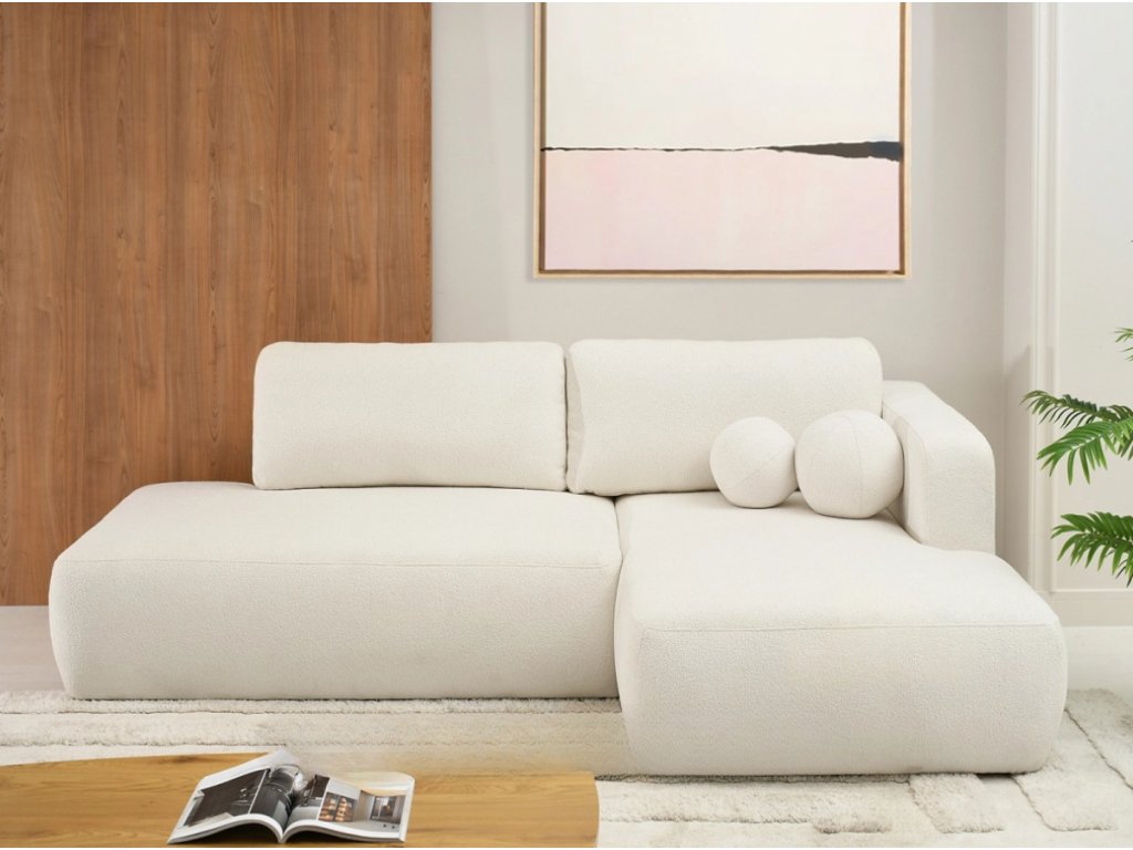 Rohová pohovka AYDEN v krémovej farbe sa vďaka svojmu jednoduchému tvaru a elegantným farbám perfektne hodí do minimalistických, škandinávskych a moderných interiérov. Dokonale sa hodí aj do štýlu boho a japandi , kde svetlé farby a mäkké látky zdôrazňujú útulný a harmonický charakter priestoru.