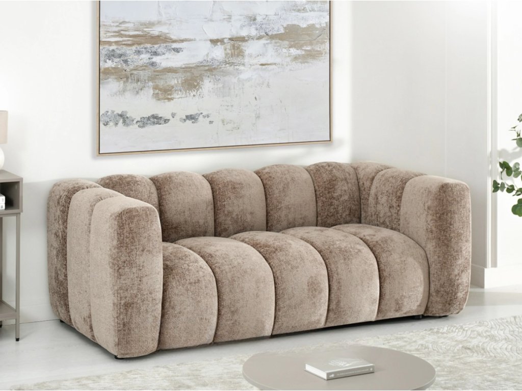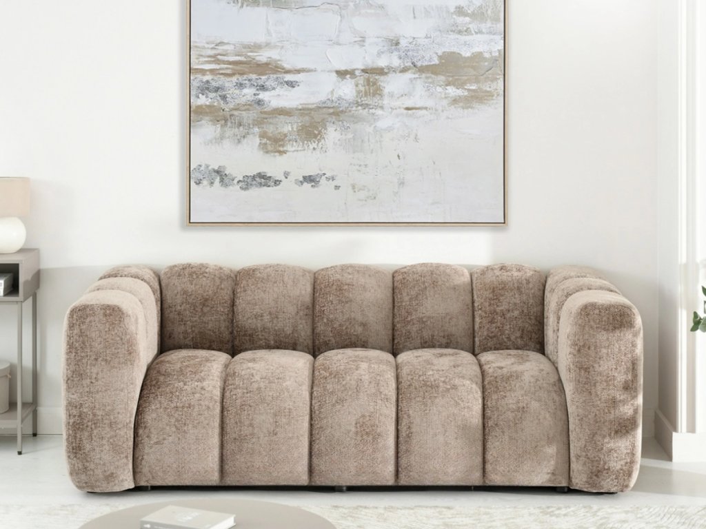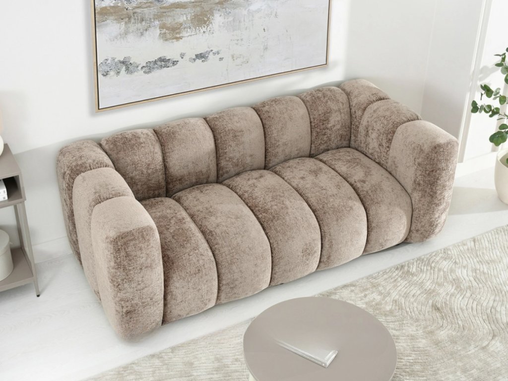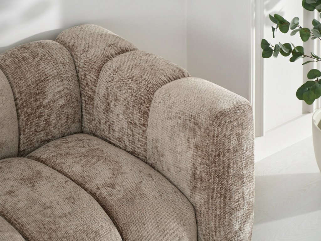Čalúnenie pohovky GUNNER je vyrobené z hnedej štrukturálnej látky zo ženilkových priadzí, ktorá poteší nielen svojou farbou, ale aj výraznou textúrou. Ženilková priadza dodáva látke hĺbku a jemné tieňovanie, čo dodáva pohovke eleganciu a dodáva jej výnimočne vznešený vzhľad. Hnedá farba zatepluje interiér a vnáša doň útulnú, prirodzenú atmosféru. Ženilkový efekt dodáva pohovke mierne lesklý efekt, ktorý oživuje jednotnú farbu a dodáva pohovke elegantný vzhľad.