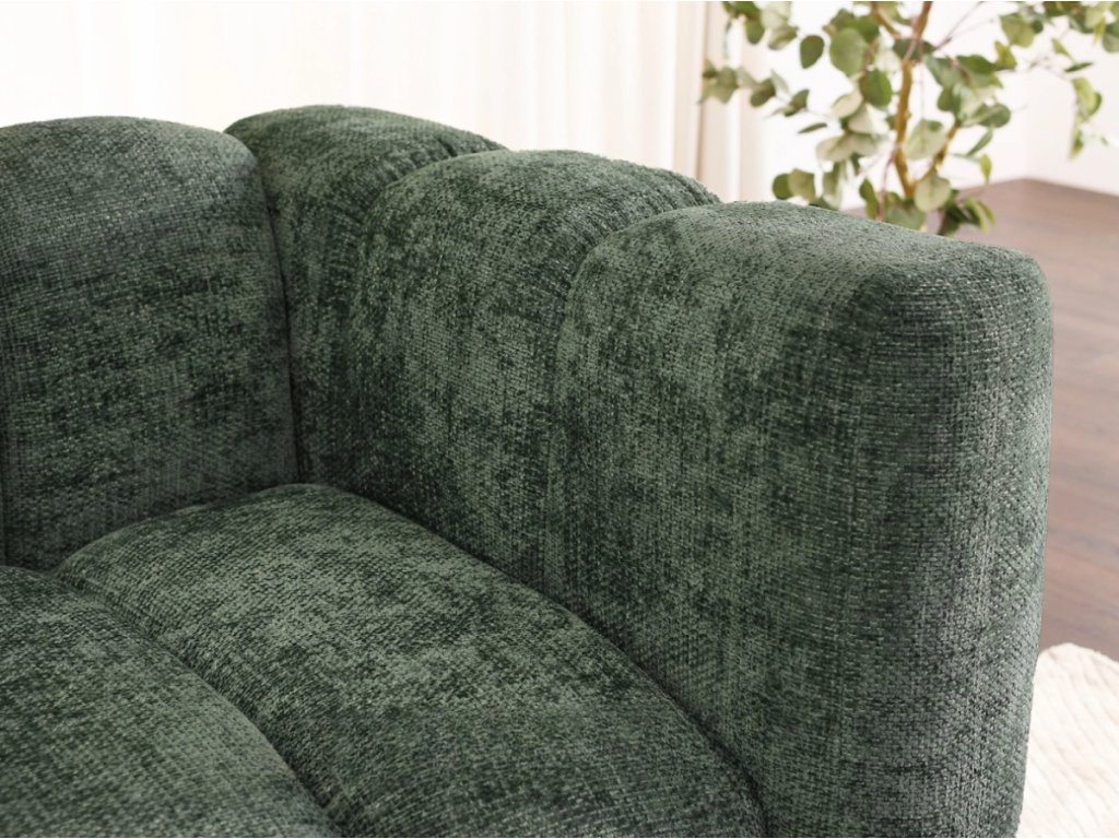 Sedadlo pohovky GUNNER je vyplnené vlnovou pružinou, ktorá zaisťuje vysoký komfort odpočinku. Vďaka tomu sa nábytok dokonale prispôsobí tvaru tela a ponúka stabilnú, no príjemne elastickú oporu. Ďalšou výhodou sú praktické podrúčky, ktoré zvyšujú pohodlie pri používaní a umožňujú vám voľne si oprieť ruky počas odpočinku. Ich mäkký, zaoblený tvar zdôrazňuje nadčasový charakter nábytku a zároveň mu dodáva ľahkosť.