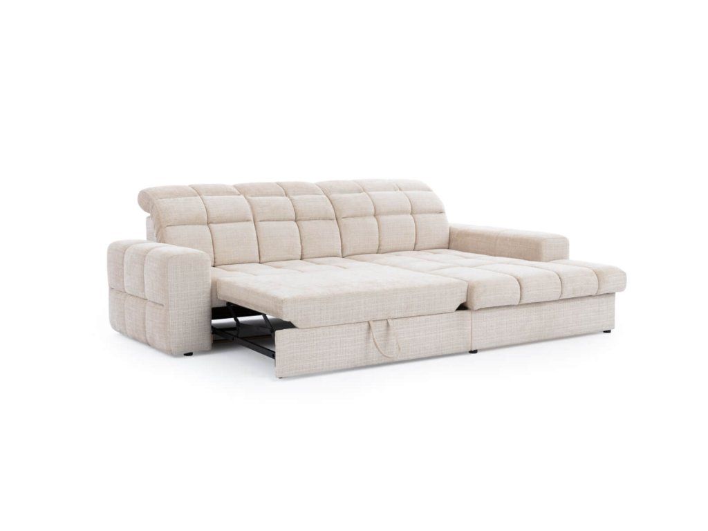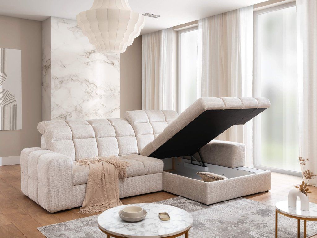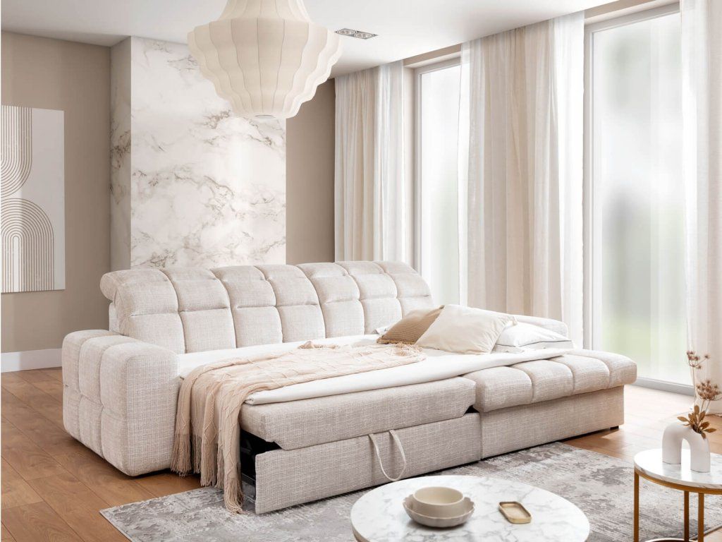 Praktické riešenie pre hostí: Vďaka intuitívnej funkcii rozkladu premeníte sedačku v priebehu pár sekúnd na priestranné lôžko. Nechýba ani veľký úložný priestor na posteľnú bielizeň ukrytý v otomane.