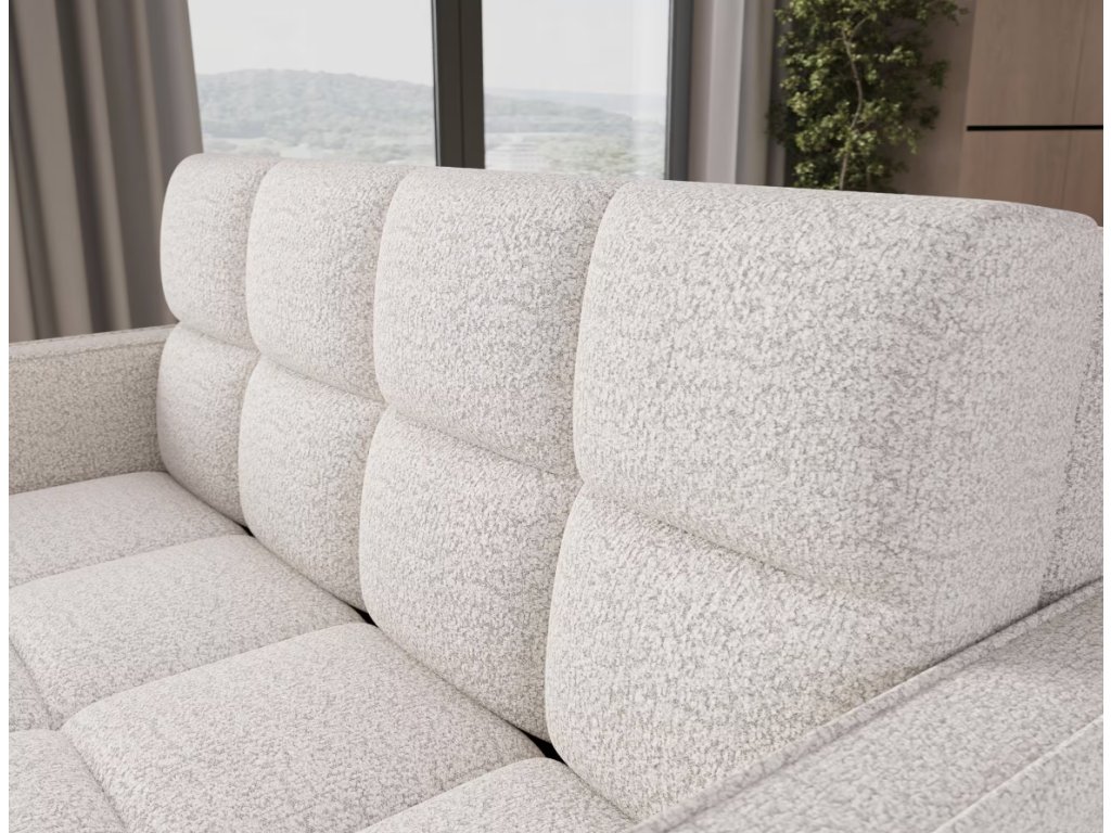 Čalúnené operadlo umožňuje umiestniť nábytok kamkoľvek bez nutnosti prisúvať ho k stene, čo zvyšuje slobodu usporiadania. Celá pohovka je osadená čiernymi plastovými nohami, ktoré zdôrazňujú moderný charakter americkej pohovky.