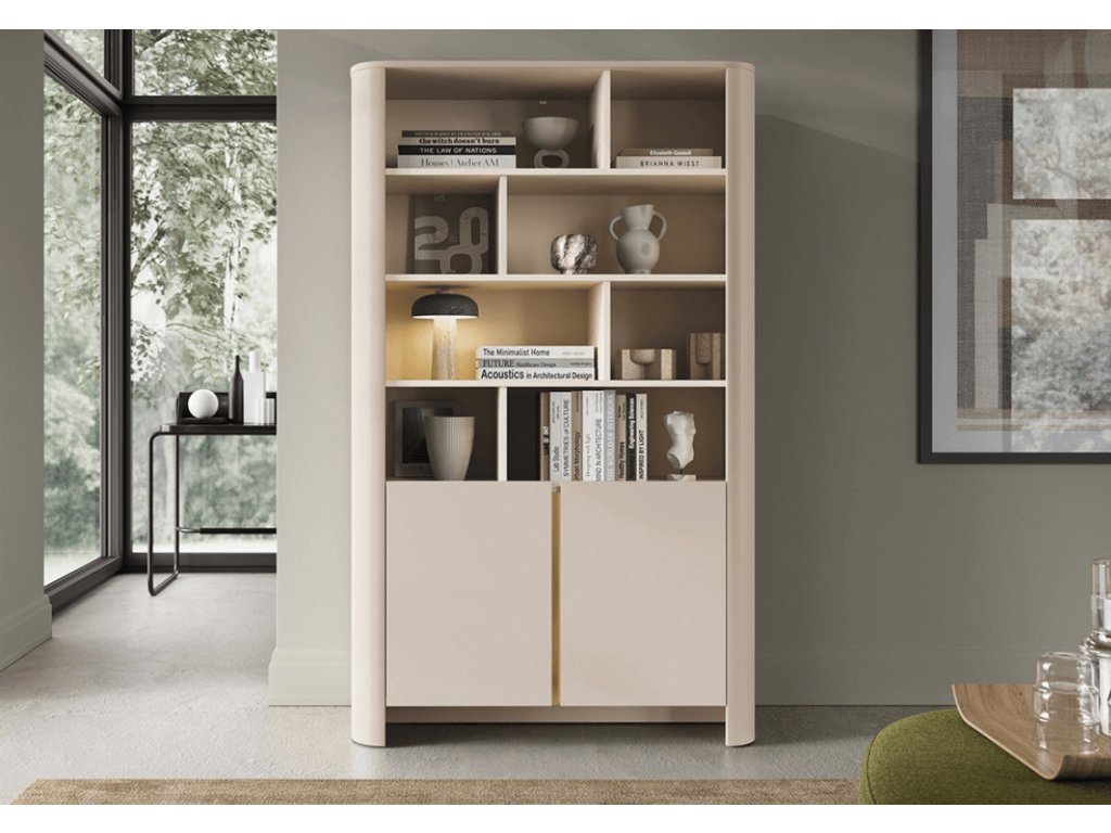 Vysoká vitrína kašmírová je elegantná a praktický kus nábytku, ktorý sa hodí do moderného i klasického interiéru.