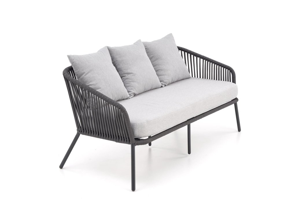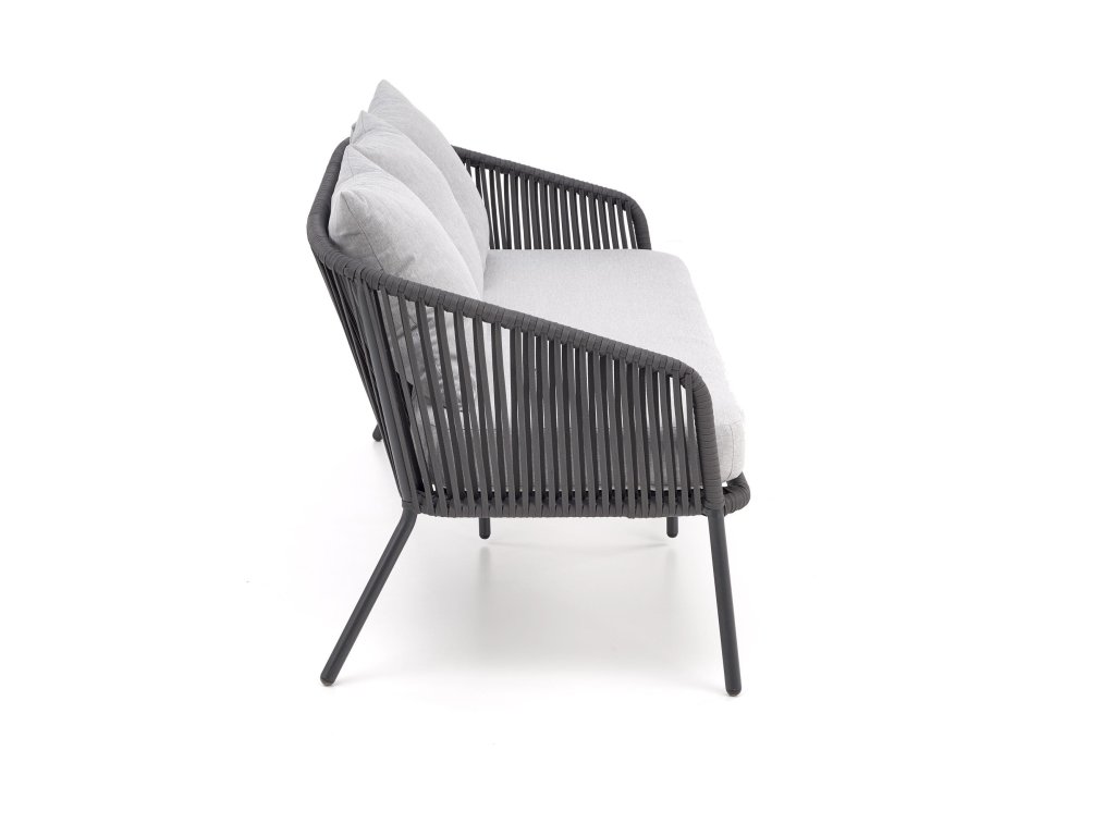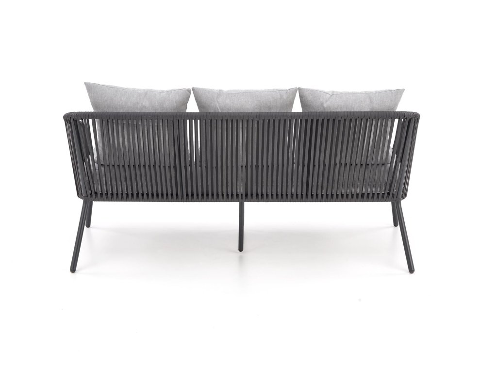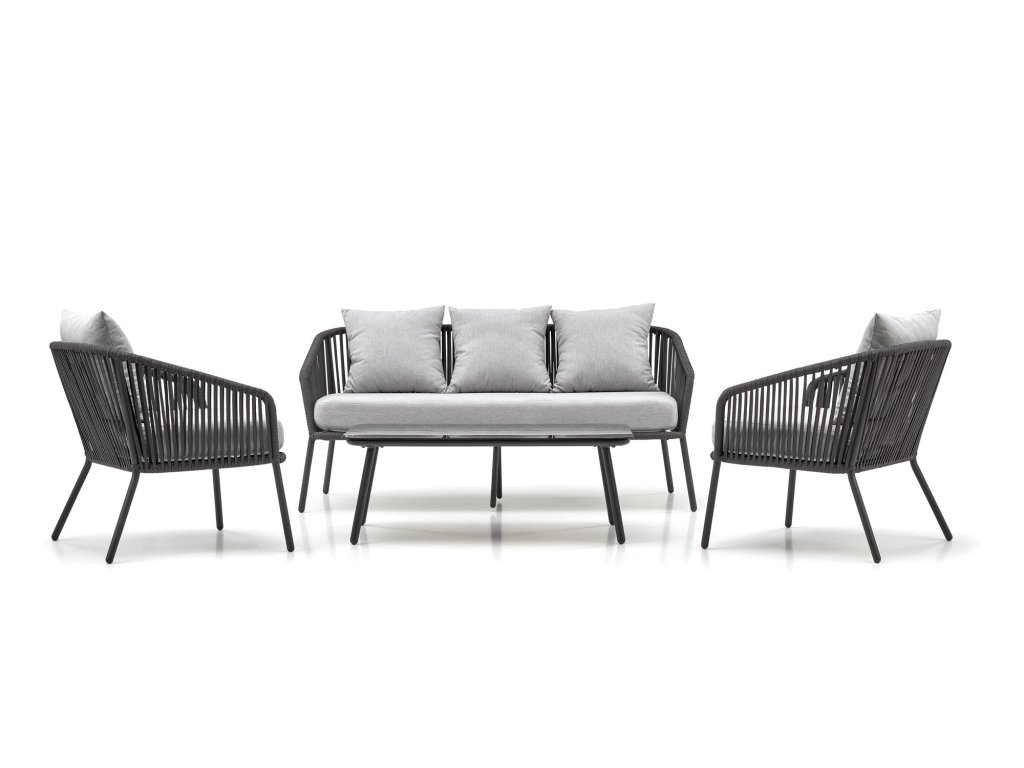 Dizajnová záhradná zostava Adele v tmavo sivom odtieni sa skladá s pohovky, dvoch kresiel a stolíka.