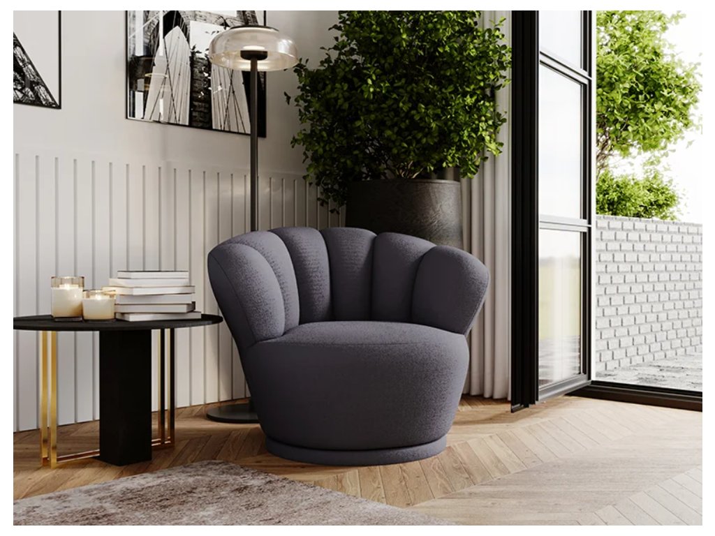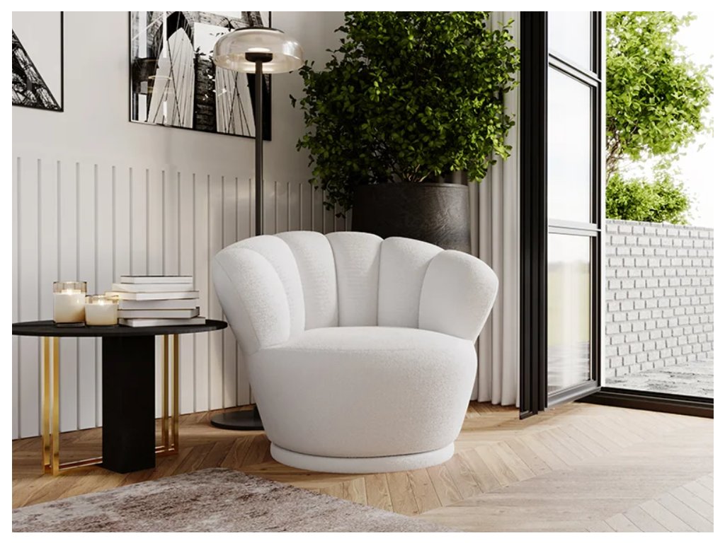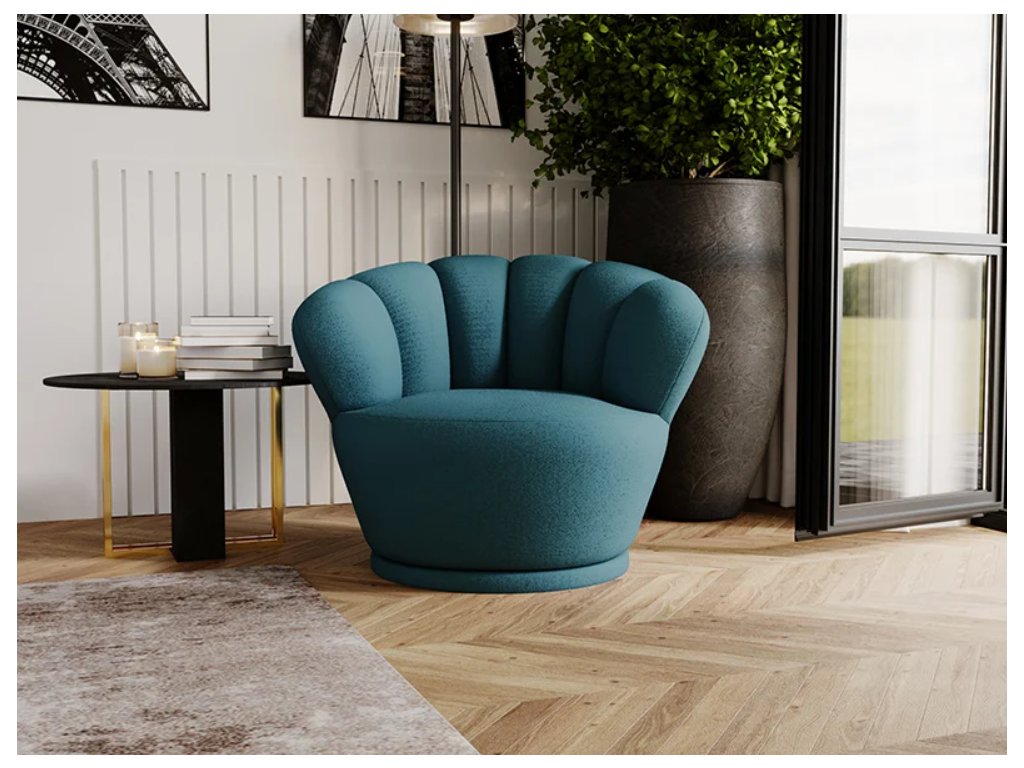 Jeho tvar inšpirovaný mušľou nielen poteší svojím decentným dizajnom, ale tiež dokonale podopiera chrbát a vytvára ideálne miesto na relax. S každou chvíľou strávenou v tomto kresle pocítite, ako mäkkosť látky obaľuje vaše telo a jedinečné operadlo vnáša do interiéru eleganciu a harmóniu.