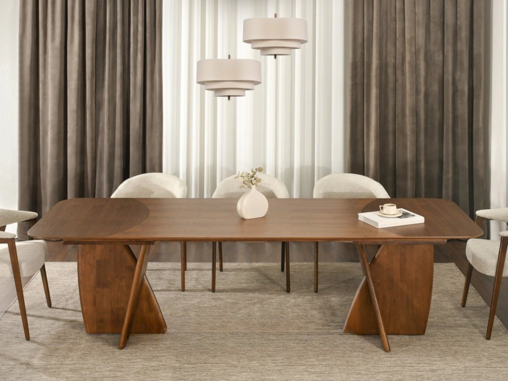 Objavte jedinečný orechový stôl LINEA – kus nábytku, ktorý do vašej jedálne vnesie jedinečné čaro a funkčnosť. Tento elegantný obdĺžnikový stôl s rozmermi 280 cm kombinuje nadčasovú estetiku s praktickosťou a vytvára priestor ideálny pre rodinné stretnutia a špeciálne chvíle.