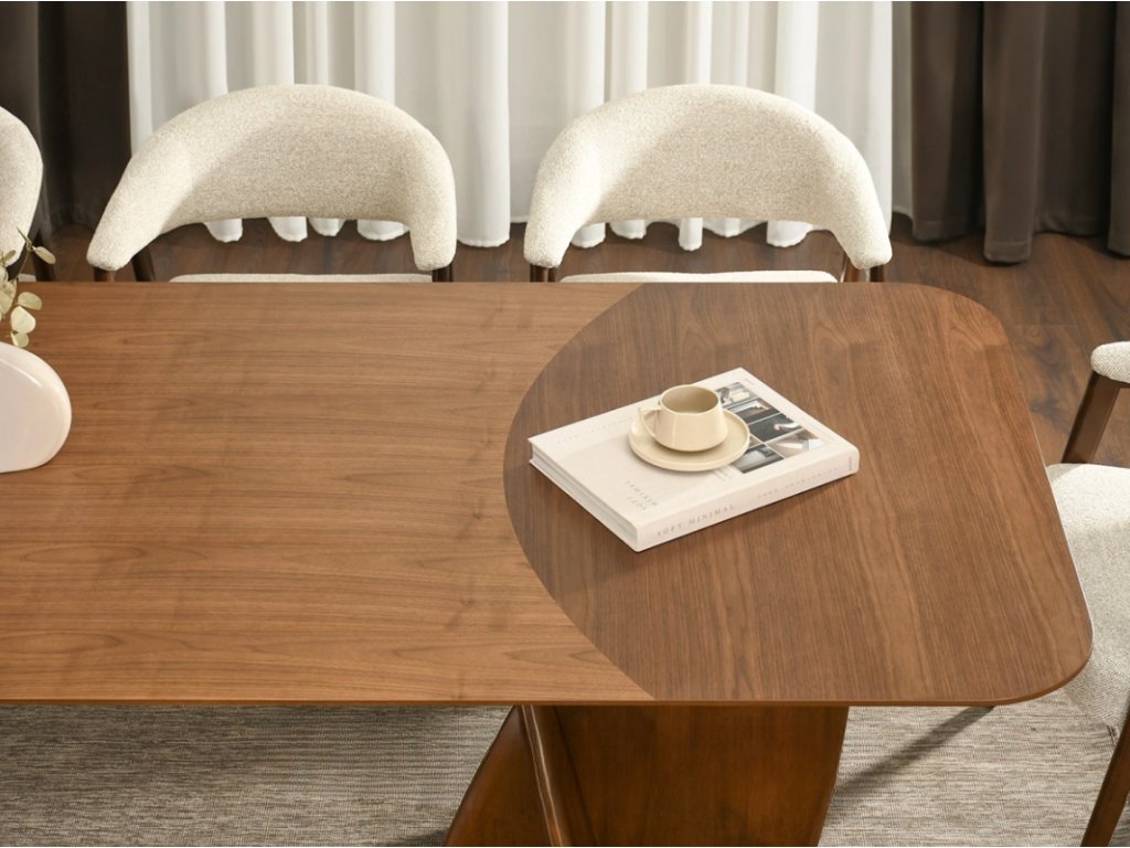 Výberom stola LINEA investujete do pevného, priestranného a štýlového kusu nábytku , ktorý sa stane srdcom vašej jedálne. Jeho vyrezávaná základňa a vrchná doska z prírodného orechového dreva vytvárajú harmonický celok, ktorý spája odolnosť s estetikou. Je to voľba pre tých, ktorí si cenia pohodlie, eleganciu a moderný dizajn a chcú sa tešiť z jedinečného kusu nábytku po mnoho rokov. Investujte do kvality a funkčnosti , ktoré zvýraznia charakter každého interiéru.