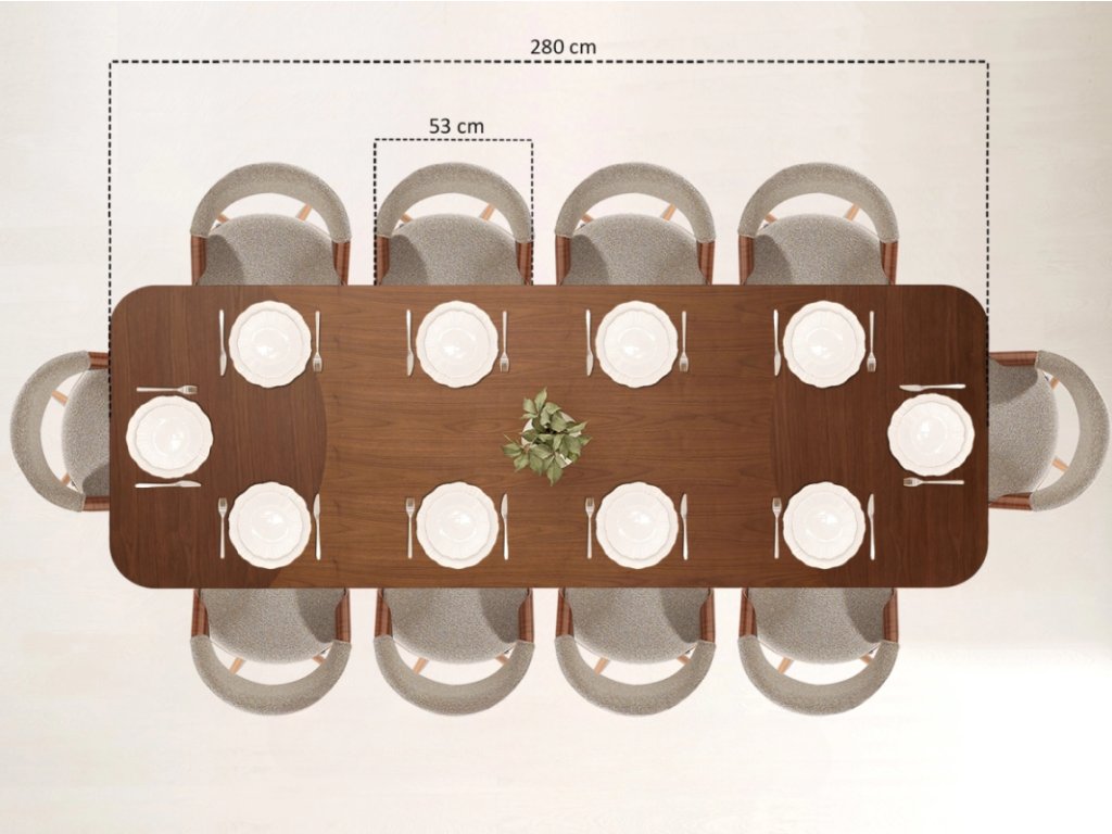 Stôl LINEA vyniká predovšetkým svojou priestrannou doskou, ktorá pojme až 12 osôb , vďaka čomu je ideálnou voľbou pre rodinné večere a spoločenské stretnutia. Jeho pevná konštrukcia, podopretá dvoma dizajnovými nohami, zaisťuje stabilitu, zatiaľ čo organický tvar dvojbodovej základne umožňuje pohodlné sedenie. To nielenže poskytuje esteticky príjemný kus nábytku, ale aj praktické riešenie, ktoré zvyšuje pohodlie každodenného používania. Asymetrická, pretínajúca sa základňa nie je len dekoratívna, ale je aj symbolom vysoko kvalitného remeselného spracovania a dôrazu na detail.