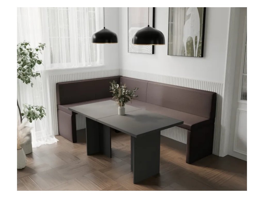 Čalúnená kuchynská rohová pohovka RAIDEN s pohodlným sedadlom, čalúnením z eko kože a možnosťou výberu pravej/ľavej strany je ideálnym riešením pre rodinné stolovanie, ktoré sa perfektne hodí do každej kuchyne.