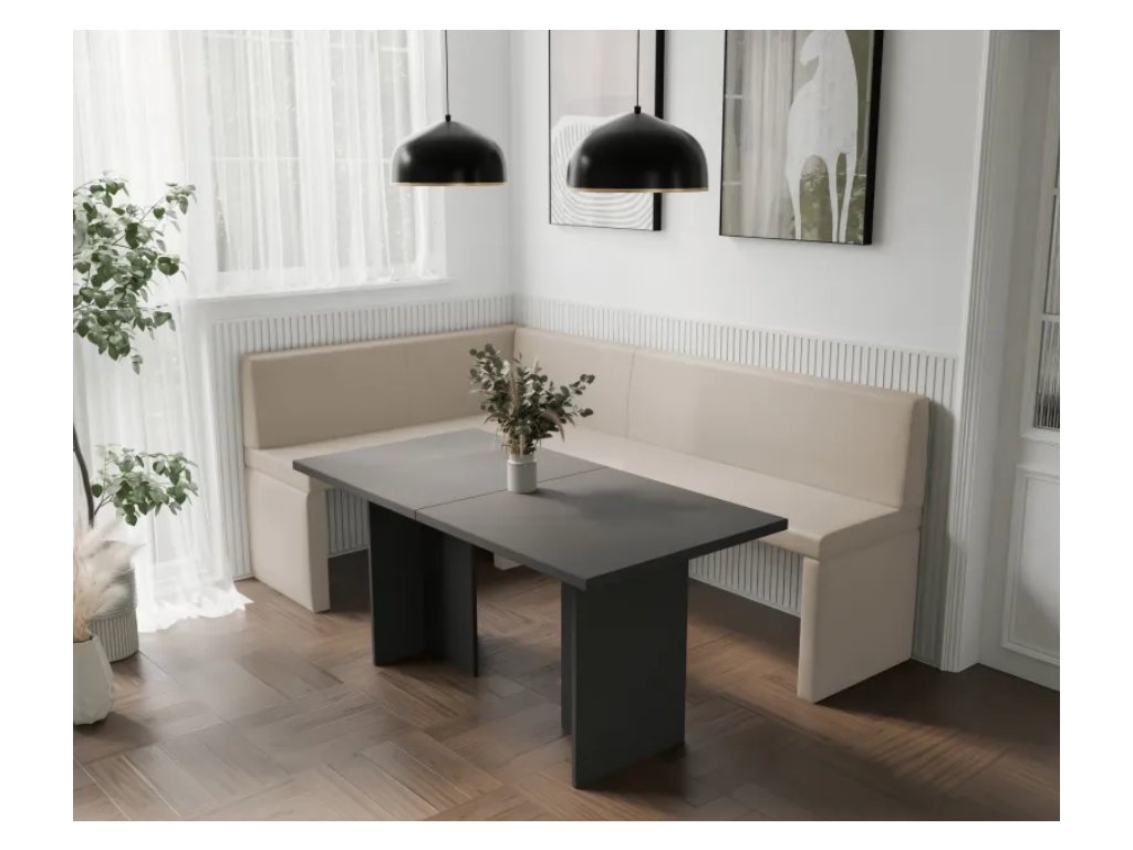 Vďaka pevnej a stabilnej konštrukcii je ideálnou voľbou pre rodiny s deťmi. Vysokokvalitná MÄKKÁ ekokoža so zvýšenou odolnosťou proti oderu zaručuje dlhotrvajúcu životnosť, zatiaľ čo čalúnený operadlo umožňuje flexibilné možnosti usporiadania – pohovku môžete umiestniť k stolu alebo samostatne kdekoľvek v kuchyni či jedálni.
