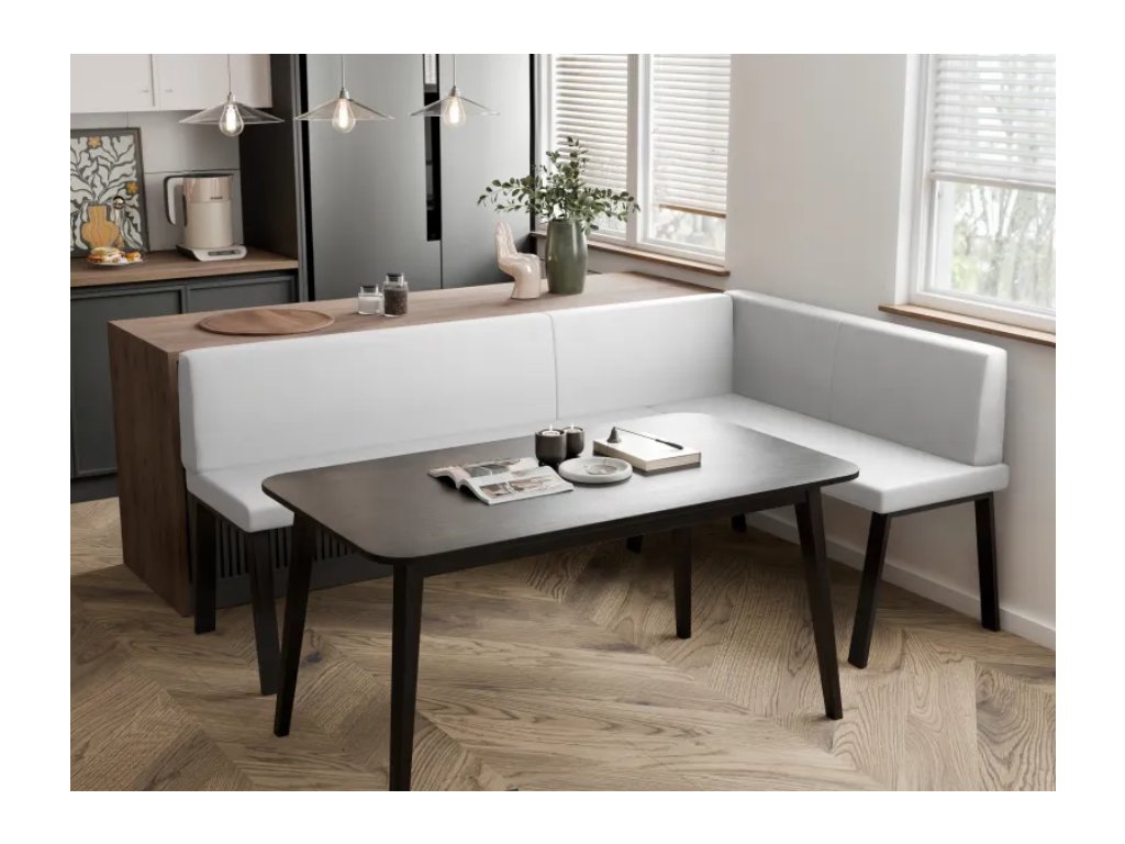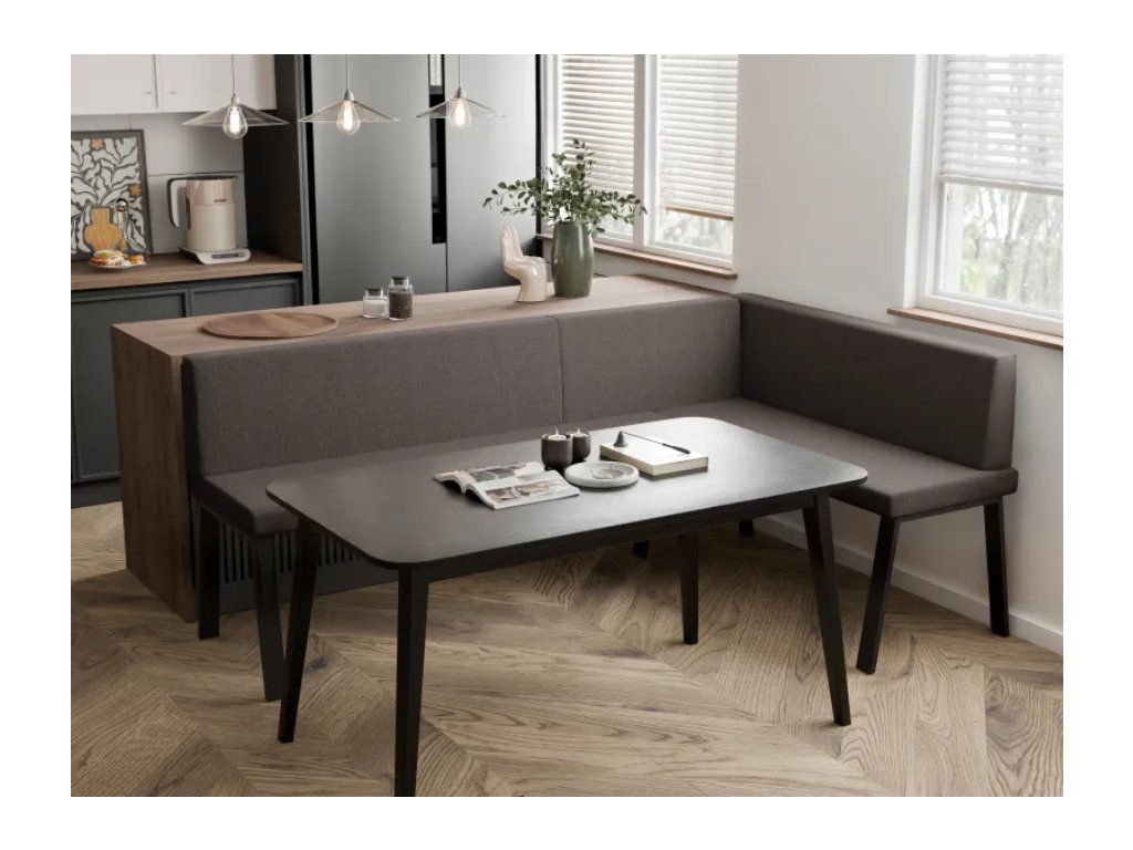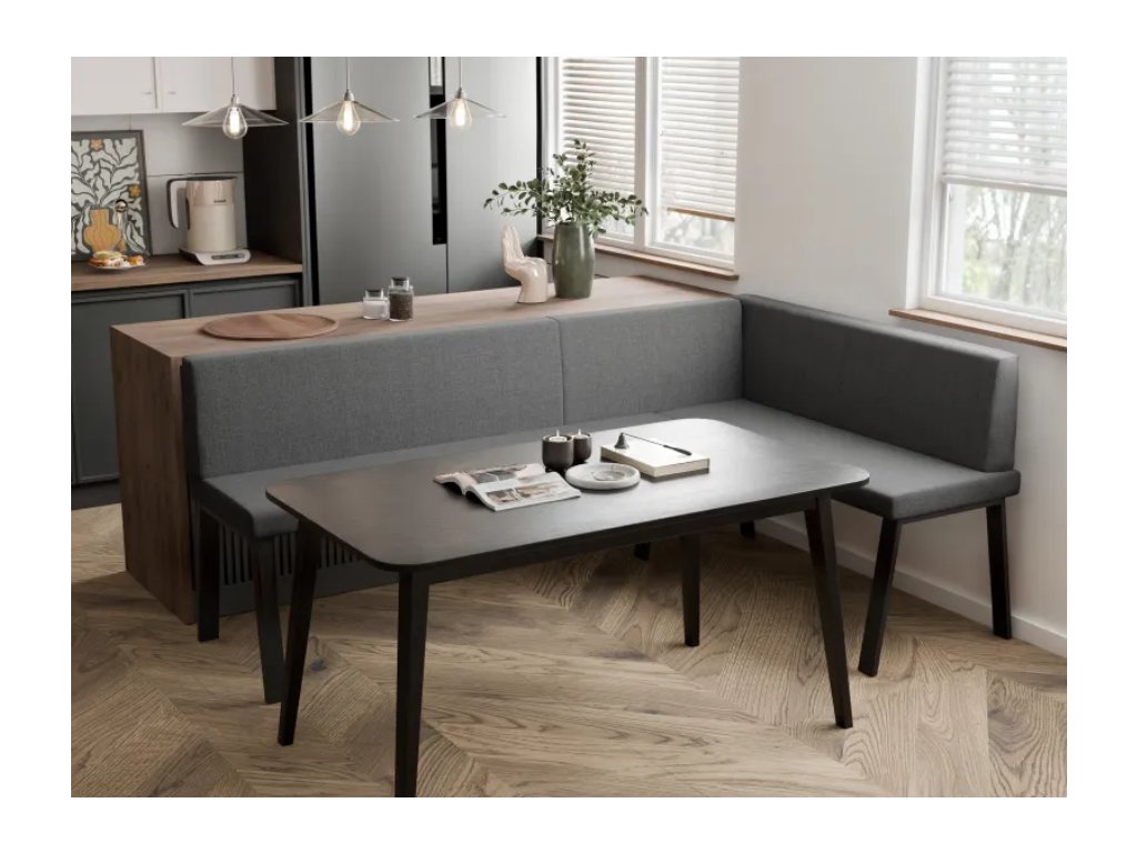 Čalúnená rohová kuchynská sedačka RENE s pohodlným sedadlom, čalúnením v rôznych látkach a možnosťou výberu pravej/ľavej strany je ideálnym riešením pre rodinné stolovanie, ktoré sa perfektne hodí do každej kuchyne.