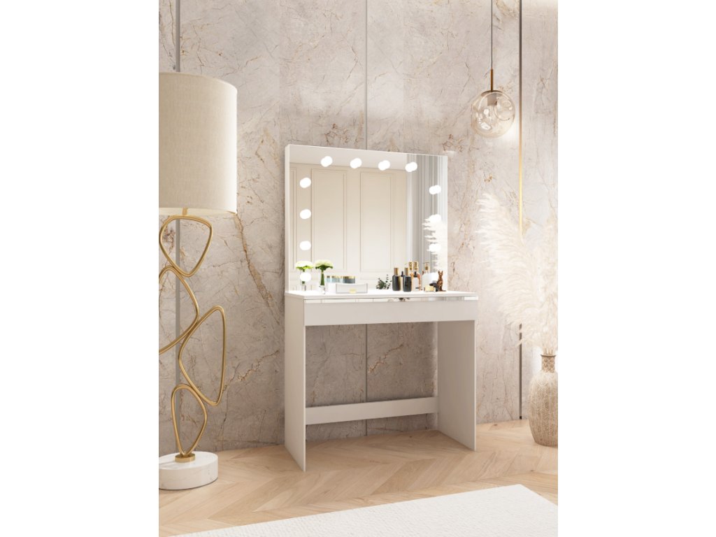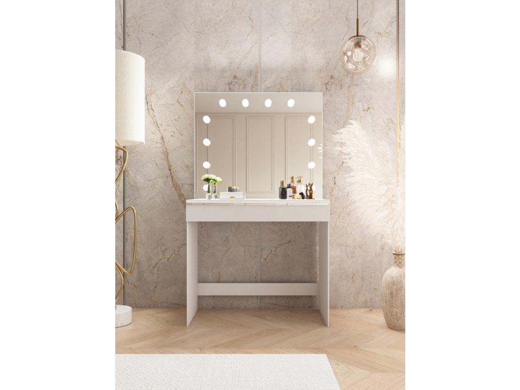 Jeho moderný tvar, precízne remeselné spracovanie a osvetlenie v hollywoodskom štýle s 12 LED žiarovkami z neho robia nielen kus nábytku, ale aj funkčný nástroj na každodennú starostlivosť a nanášanie make-upu.