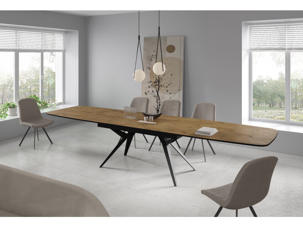 Jeho najväčšou prednosťou je impozantná variabilita. V základnom stave ponúka dĺžku 180 cm, no vďaka štyrom prídavným doskám ho ľahko premeníte na grandiózny stôl s dĺžkou až 380 cm. Priestranná doska so zaoblenými rohmi zaručuje bezpečnosť a pohodlie pre veľký počet hostí či kolegov – či už ide o veľkú rodinnú oslavu, dôležitú poradu alebo tímový brainstorming.