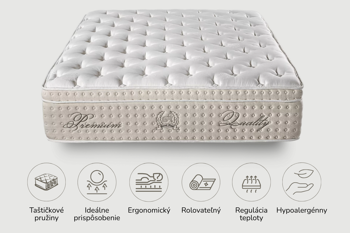 - Matrac má 14 vrstiev, ktoré spolupracujú pri rozložení tlaku a podpore tela.