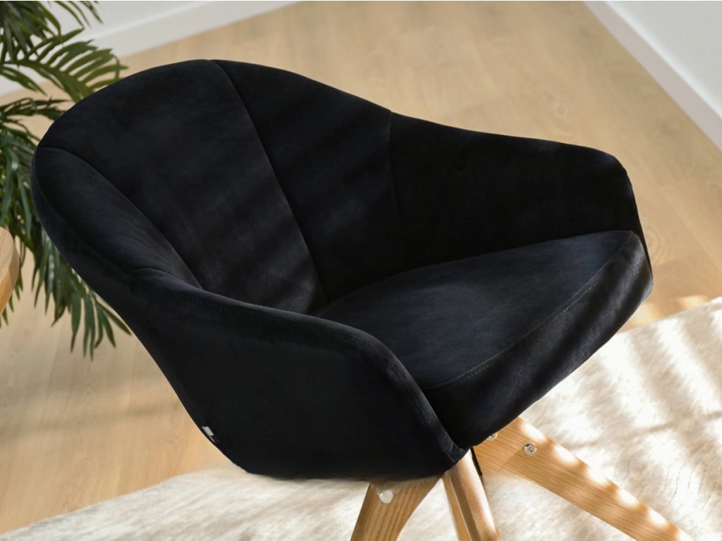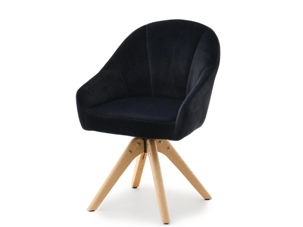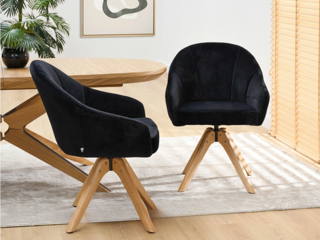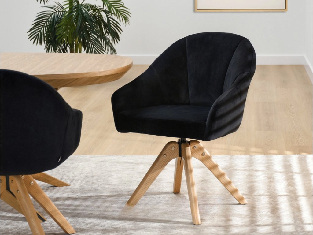 Jedálenská otočná stolička KIAN čierny zamat + dubové nohy