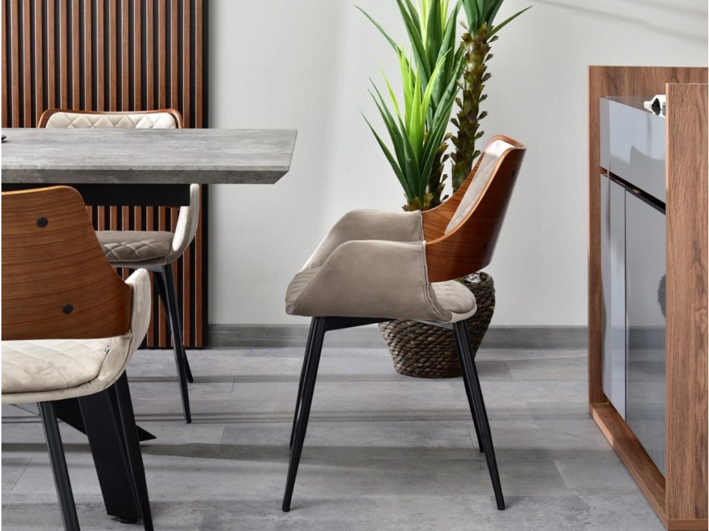 Jedálenská stolička AUDREY orech béžová + čierne nohy