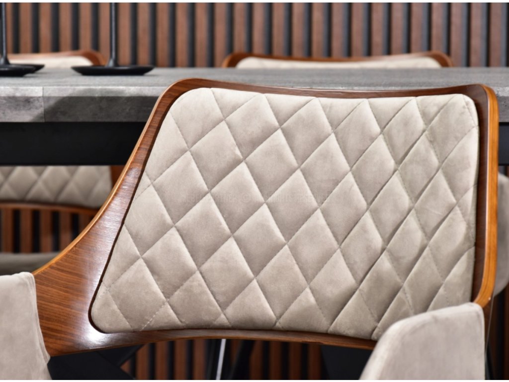Štýlová konštrukcia z orechového dreva robí nábytok ideálnym do teplých a útulných miestností. Zamatové kreslo zasa vďaka dekoratívnemu prešívaniu dokonale zapadne do elegantného, minimalistického priestoru. Jasným farbám tohto kusu nábytku neodoláte ani vy, ani vaši hostia. Moderné obývačkové stoličky MORGAN sú jedinečné z mnohých dôvodov. Jedným z nich je pohodlie pri používaní. Vďaka správne profilovanému operadlu , pohodlnému sedadlu a pevným opierkam rúk je používanie tohto produktu veľkým potešením. Ďalšou výhodou je vhodná kombinácia materiálov. Prírodné drevo , mäkká, lesklá látka a oceľové nohy spolu vytvárajú štýlové stoličky, ktoré sa hodia do minimalistického, chladného interiéru podkrovného priestoru aj do rustikálneho domova.