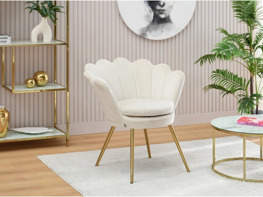 Jedálenská stolička SHELL krémová + zlaté nohy