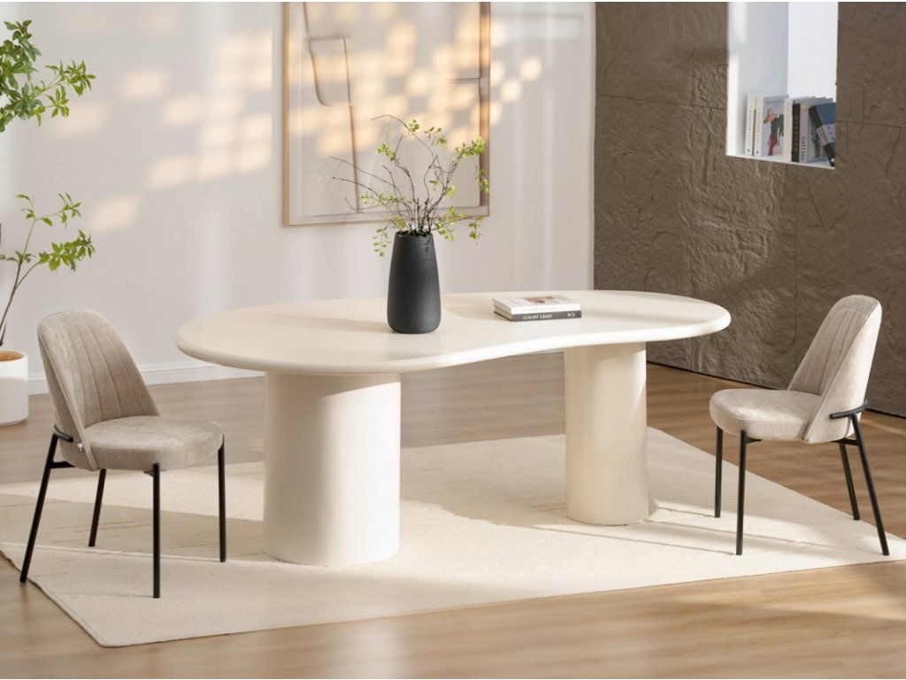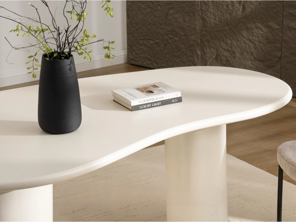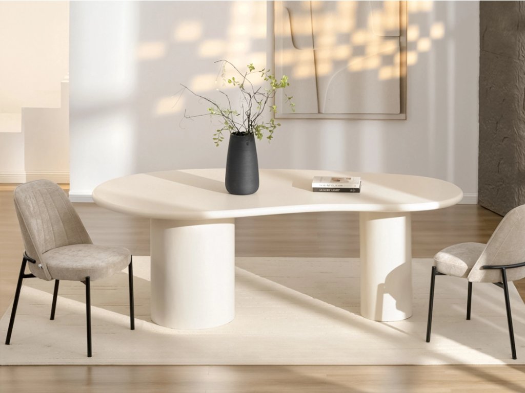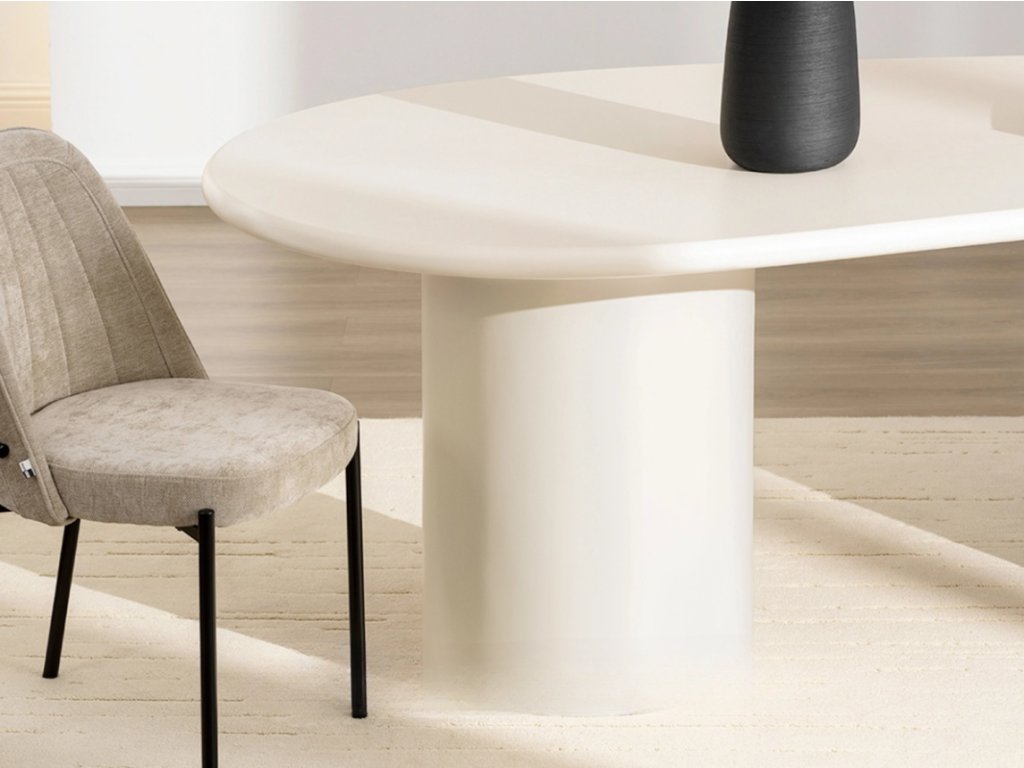 Výberom krémovo-bieleho stola WESSON investujete do pohodlia, štýlu a odolnosti . Jeho zaoblená doska a stĺpová základňa zaisťujú nielen estetickú príťažlivosť, ale aj bezpečnosť a stabilitu. Vďaka vysoko kvalitným materiálom a precíznemu spracovaniu vám tento kus nábytku vydrží mnoho rokov a zachová si svoj jedinečný charakter. Cítite sa vo svojom interiéri výnimočne a vychutnajte si každú chvíľu strávenú pri stole WESSON .