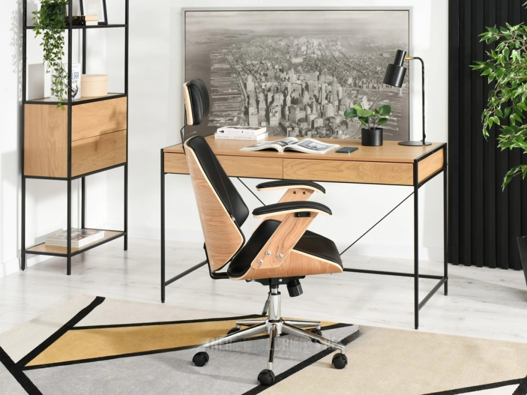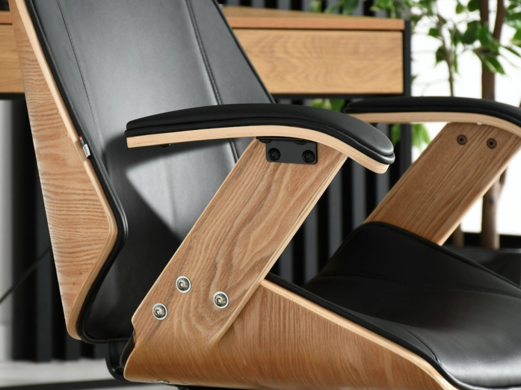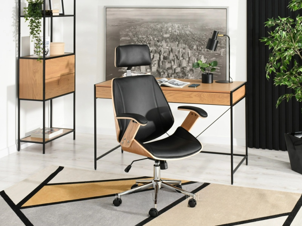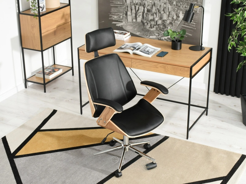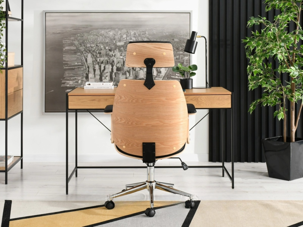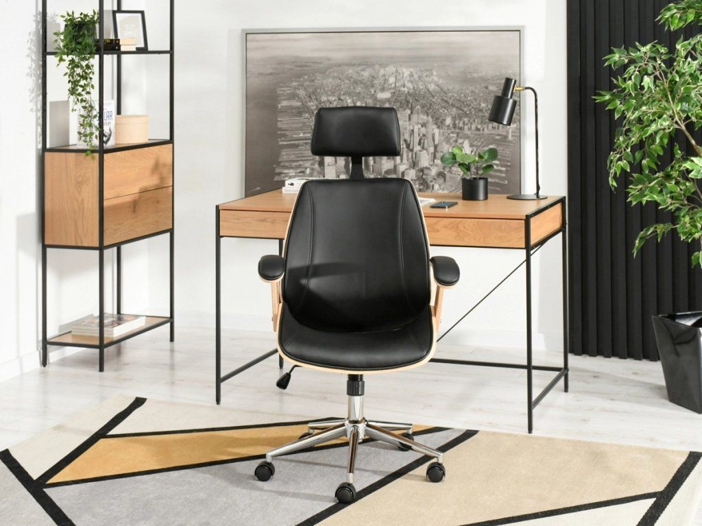 Je vyrobená z čiernej ekokože a podopretá dreveným rámom , takže sa môže pochváliť všetkými funkciami, ktoré potrebujete na vychutnanie si praktického kancelárskeho priestoru. Je perfektným doplnkom do rôznych interiérov, kde sú pohodlie a štýl rovnako dôležité. Nižšie sú uvedené kľúčové výhody tejto otočnej kancelárskej stoličky :